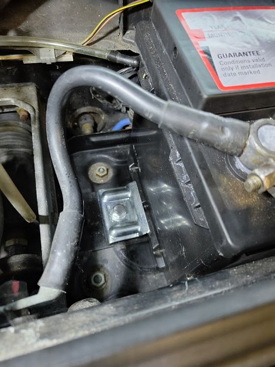 Whilst collating new bits from the parts store for the 996 today I found the battery clamp that I was supposed to fit before it was MOT'd recently..... I think mentally I had been putting this off as there was obviously a reason it didn't have the correct one fitted - someone had done a particularly impressive bit of bush engineering to use the next bolt hole down.