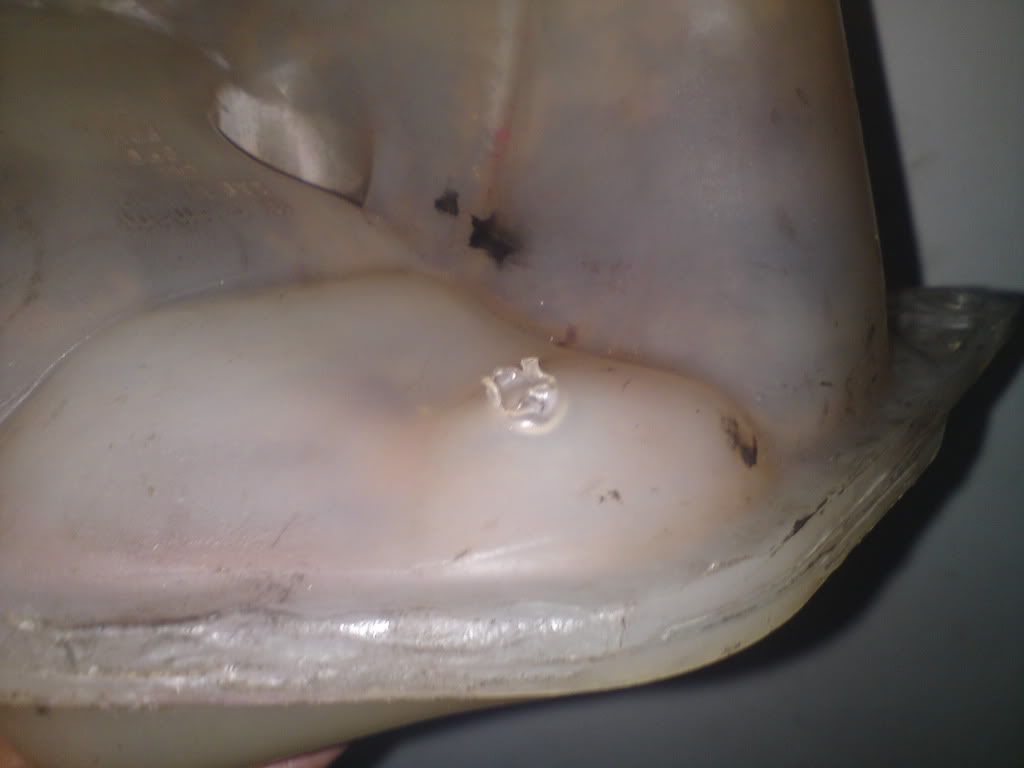 My theory is that the manifolds got really hot and heated up the washer bottle and where a zip tie was pushing against the bottle it created a weak spot.