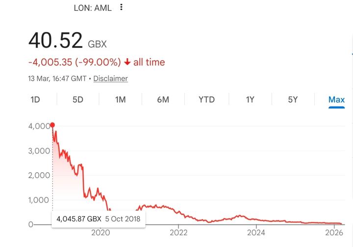 Richard, I get your point about the dilution, the effect on the face value and the various other machinations, but I'm a simple soul. If I wanted to buy a share in AML at the IPO it would have cost me £19; if I wanted to buy a share in AML in July 2021 it would have cost me £7; If I want to buy a share now it would cost me £0.43.I feel very sorry, especially for employees who bought AML shares at the time of the IPO.