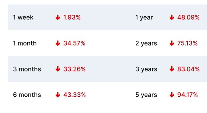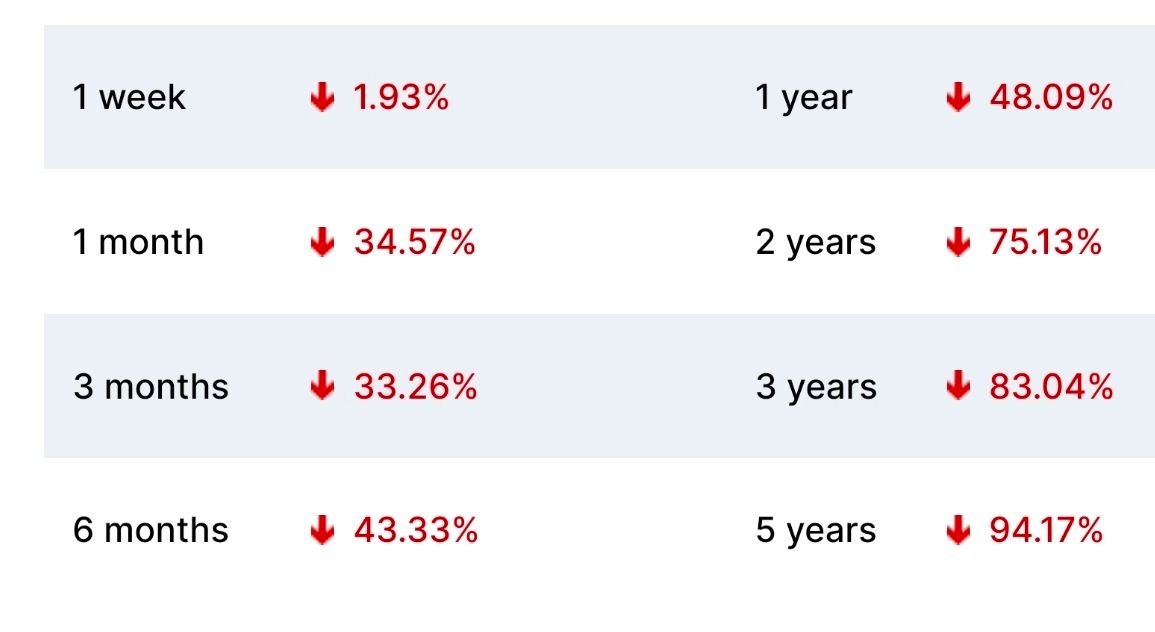 The chart above (presumably correct) shows a fall of 99% from IPO.