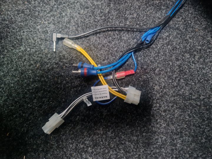 I need some help identifying cables and what was potentially plugged in here. When I bought the car, these cables were already there and I assume/am pretty sure it was for a Subwoofer set up which is simple, however what's been the problem is the white rectangular 9 pin plug. Most Subwoofer's at the moment have a 3 pin plug (found out and realised after purchasing one), after running it through ChatGPT it found that there was a subwoofer option on these with this specific 9 pin plug and the subwoofer would be under the named Kenwood for example, I guess similar situation to the Garmin Nav Unit.