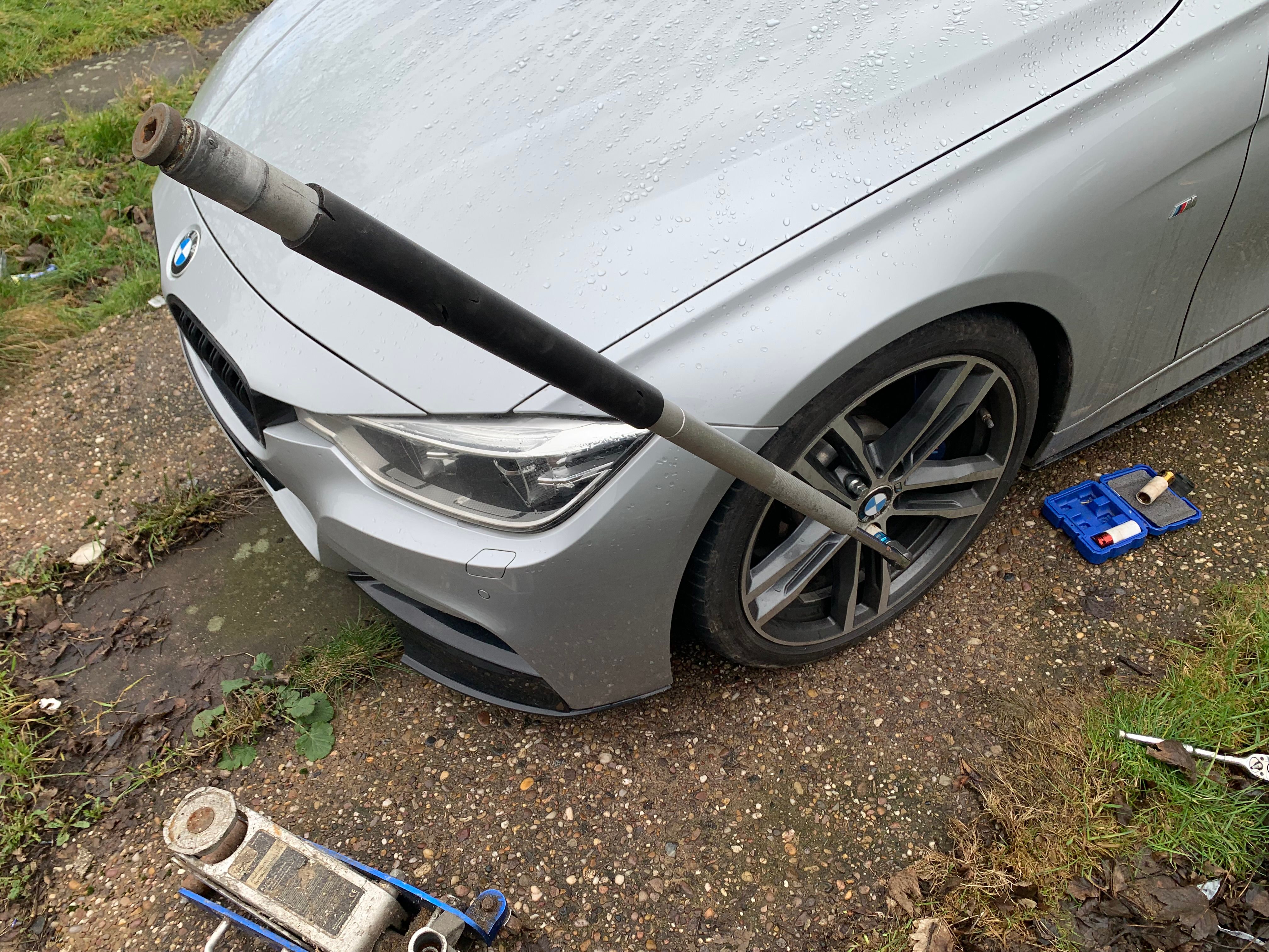 Reminds me of when I first got our F31 back home and wanted to strip the 403Ms off it ASAP; I bent my Draper breaker bar getting the wheel nuts undone; some knobber had obviously windy-gunned them on. Absolutely stupidDidnt replace the splitter, thats a more involved job when it s not raining