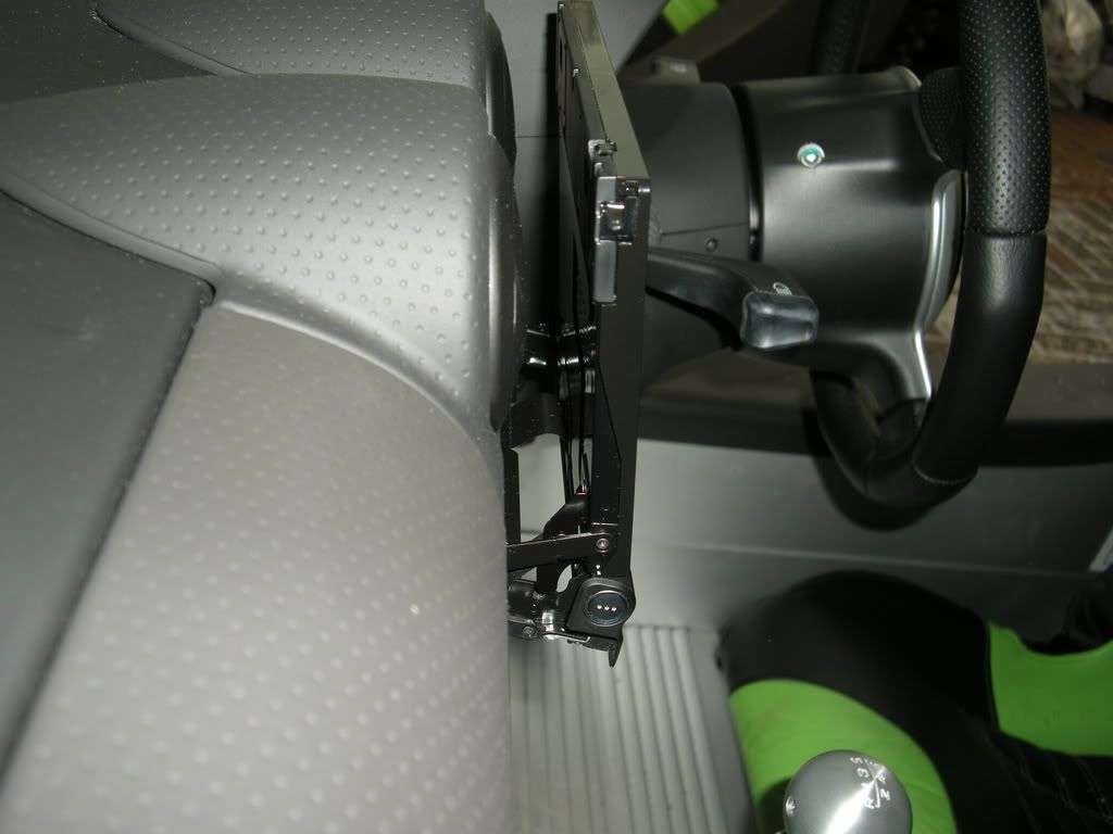 The screen adjusts so it just touches the dash, the angle is adjustable too.