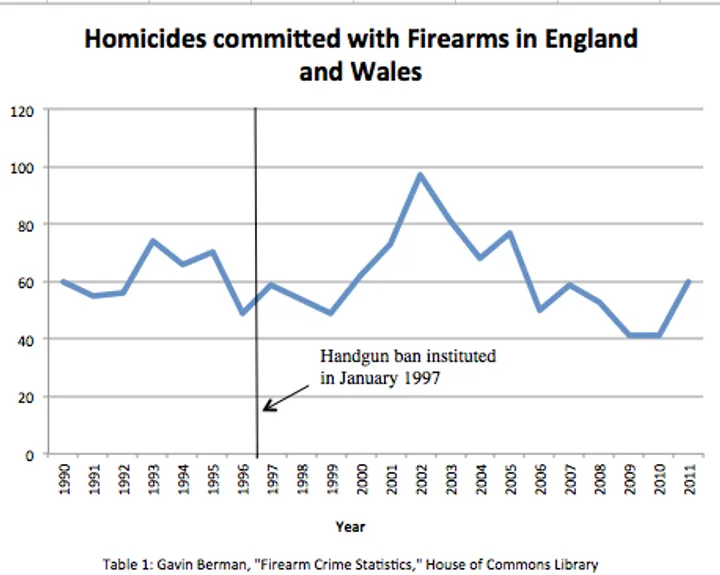 Clearly the handgun ban had no effect - all those handguns removed from circulation, yet numbers went up enormously before coming back down to basically the same level as pre-ban. (And yes I know this isn’t population weighted).