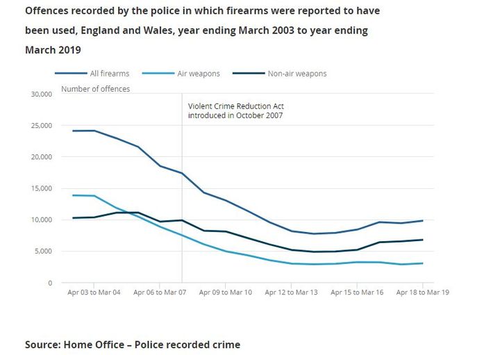 Homicides by firearm:Appreciate this data only covers 2003-19 but it shows a clear decline over that period.