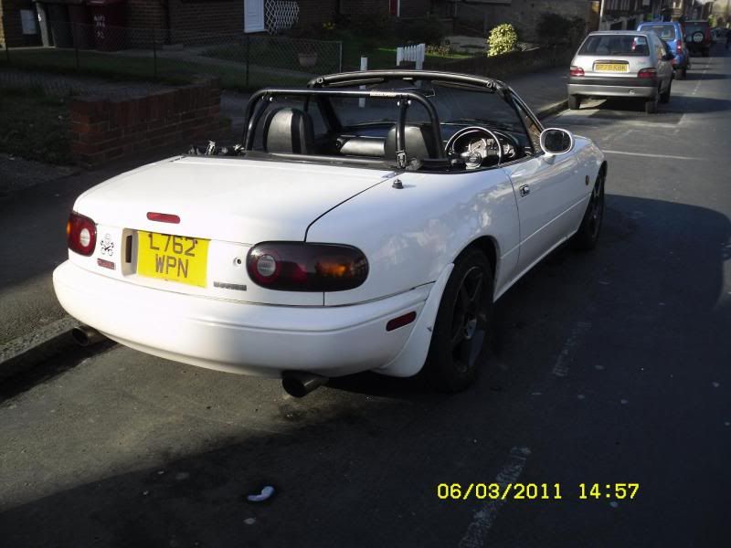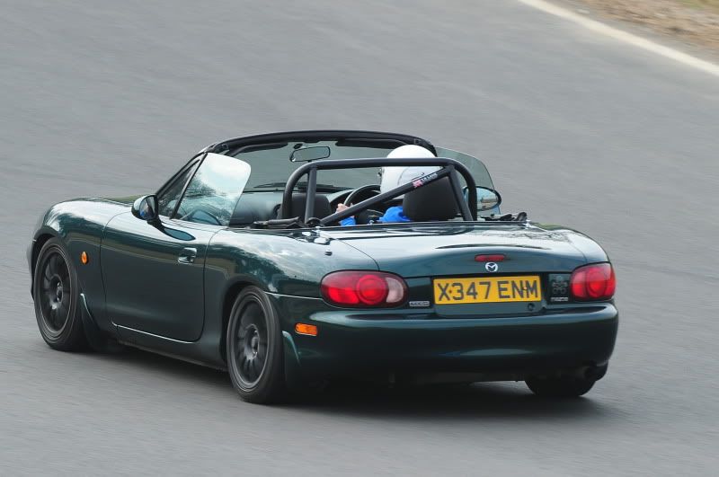 Can I have your seats?? After a spin onto the grass at Quarry, followed by a kiss of the tyre barrier. The MX-5 badge was later found inside the rear light!
