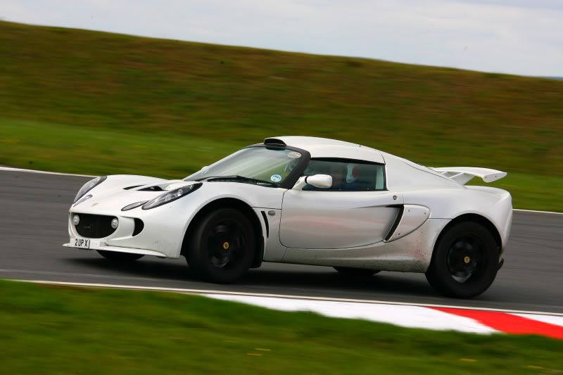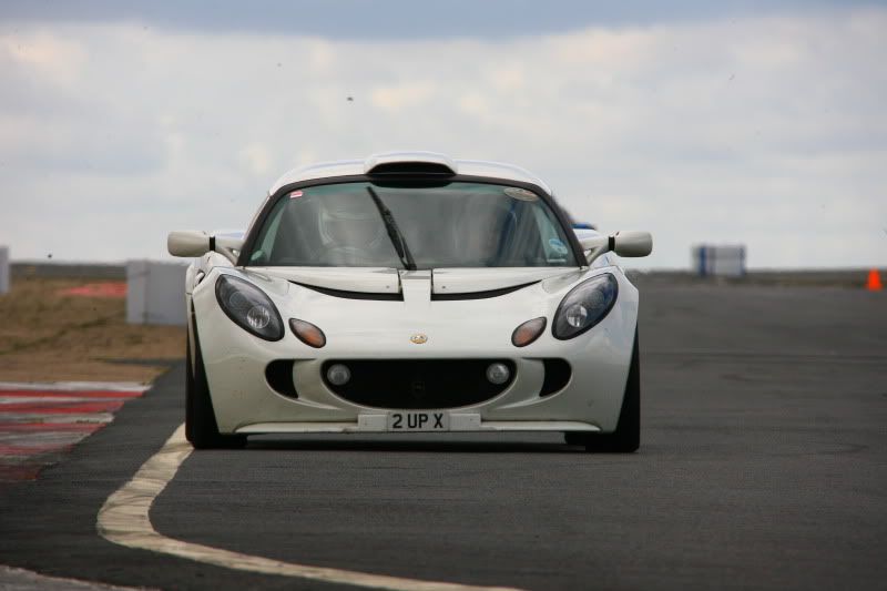 Obviously you have probably noticed that I skipped a car and as you may have guessed, this was because I saved the best until last. I had never driven an Exige before (as was shown by the fact when taking the owner's guests out for passenger rides, I failed to spot the starter button and was miserably trying to start it on the key ). This car is almost standard (which impressed me the most, as normally standard cars are wk on track), with the normal factory Bilstein dampers, but with the 2-piece front disc upgrade (with the awesome Pagid "blues" ) and the intercooler being upgraded to a larger more efficient Pro-alloy item with additional cold air ducts feeding from the side pods.