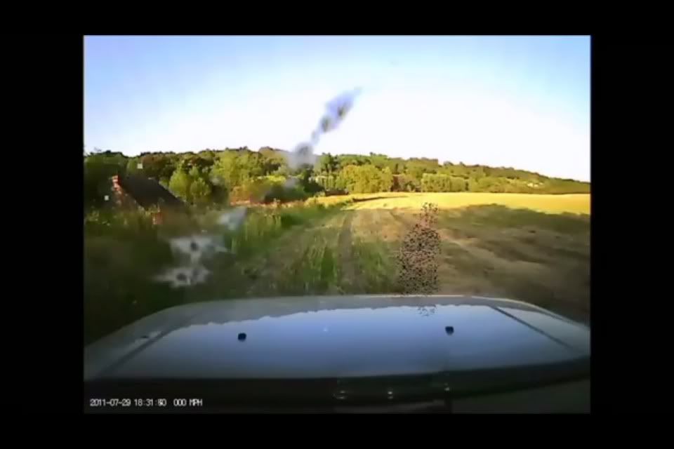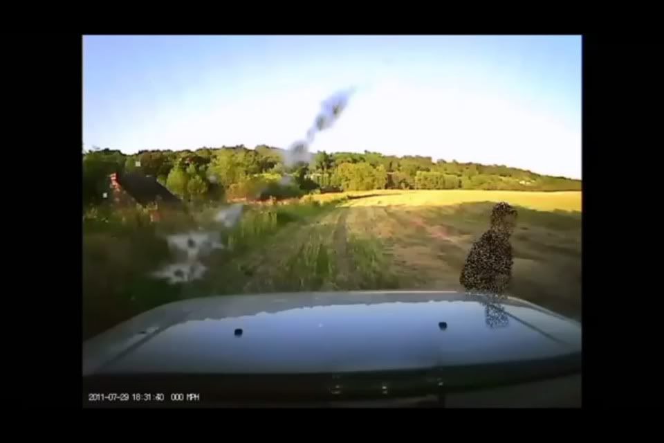 Car got a cracked windscreen, drivers window and the roof above the windscreen got dented.