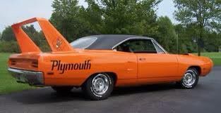 I would imagine a Harley rider driving some sort of American muscle car, perhaps something along the lines of this Plymouth: