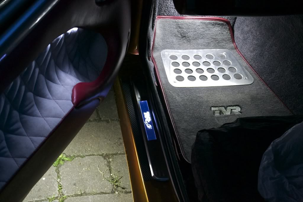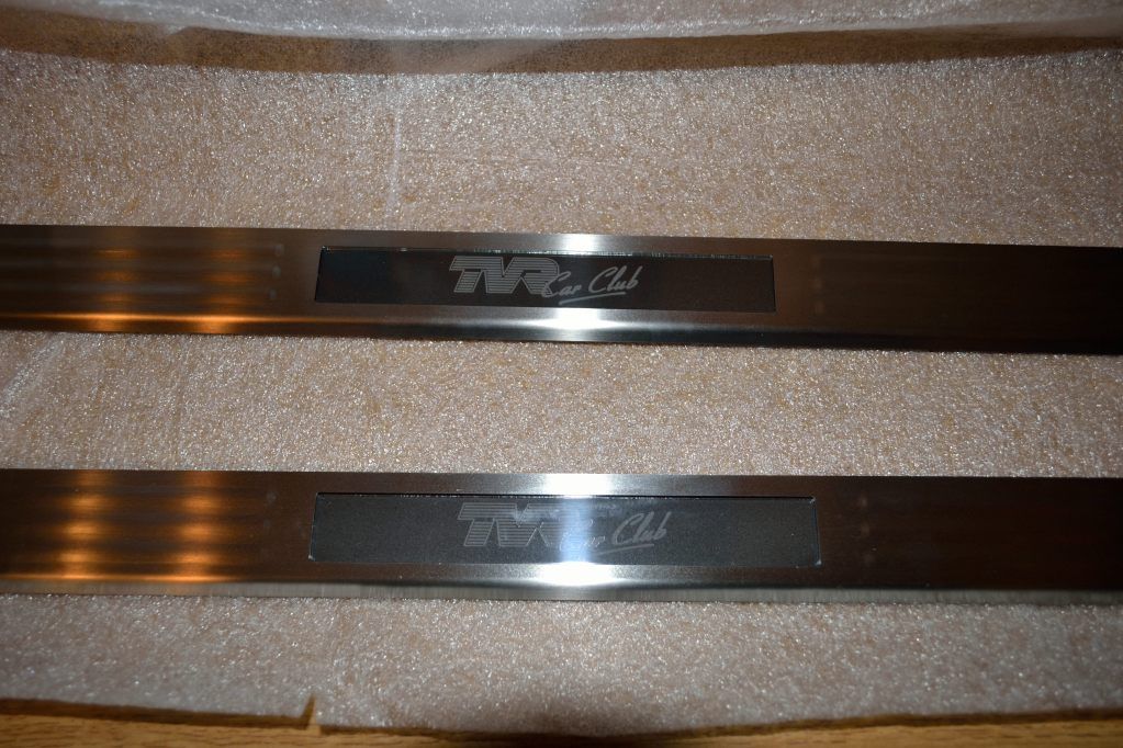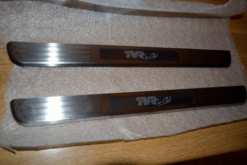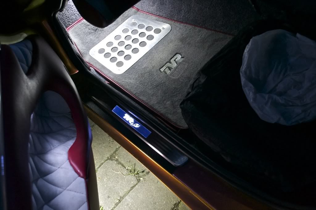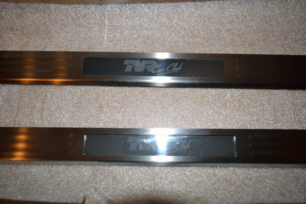 Just had delivered a set of new kickplates for the Sagaris which incorporate an illuminated TVR logo which comes on when the door opens.