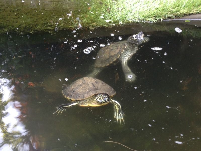 So, theyve been a lot more active in the pond over the past few weeks as its got warmer, plenty of mating dances going on too (no soft area to dig so they wont actually mate)