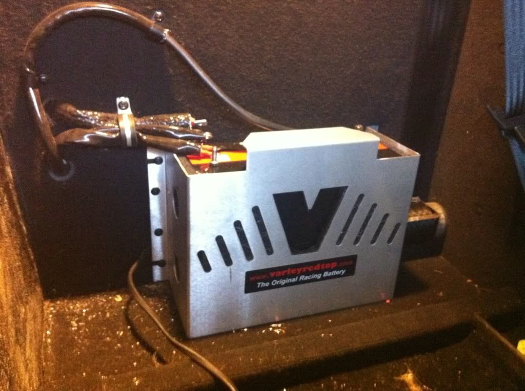 NHRA rules require any battery mounted inside the cabin to be contained inside a metal box that vents to the outside of the vehicle and that an external battery switch be installed on the car.