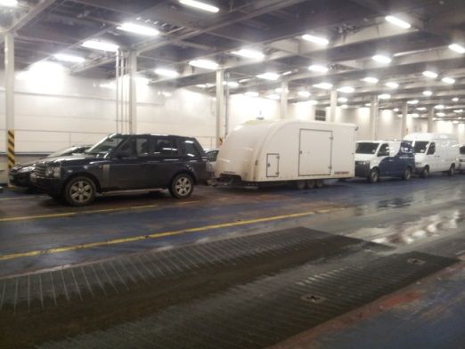 The ferry crossing was thankfully quiet with only a few dozen vehicles on the whole boat. I say thankfully quiet as I realised once I was loaded I had made a mistake on my ferry booking. I booked for a car and trailer with a length of up to 8 metres. I had measured the trailer and it just squeaked under 8 meters at 7.95 meters long. I din't realise until I was loading with other people who all had tiny trailers that it was talking about the entire length with the car too. Opps. Still this fortunate mistake saved me nearly £300 and as the ferry was so empty nobody seemed to mind!