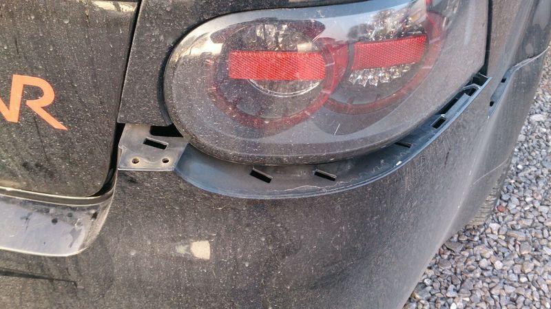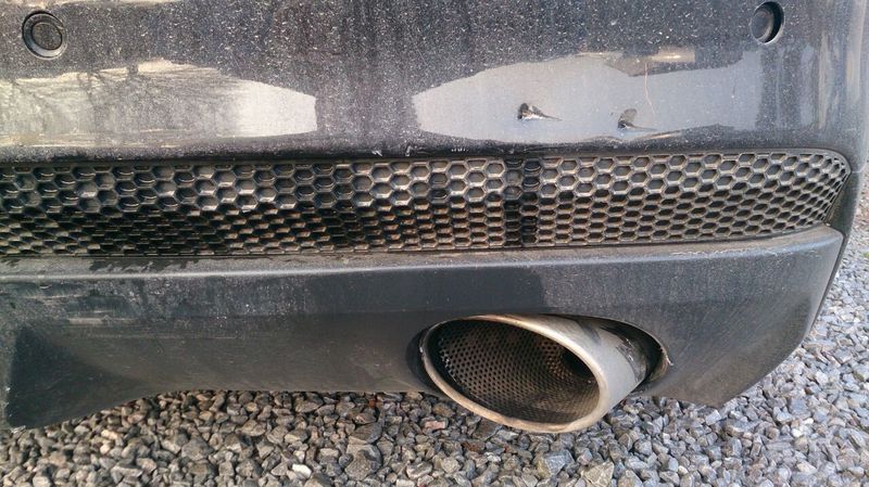 The bumper is damaged - split at the bottom and all pushed out at the top, but the rhs exhaust box is pushed in, the vacuum operated lever is now fouling the wheel arch liner, and this has bent the pipe underneath and stretched the hanger quite a bit so I'm not happy driving it.