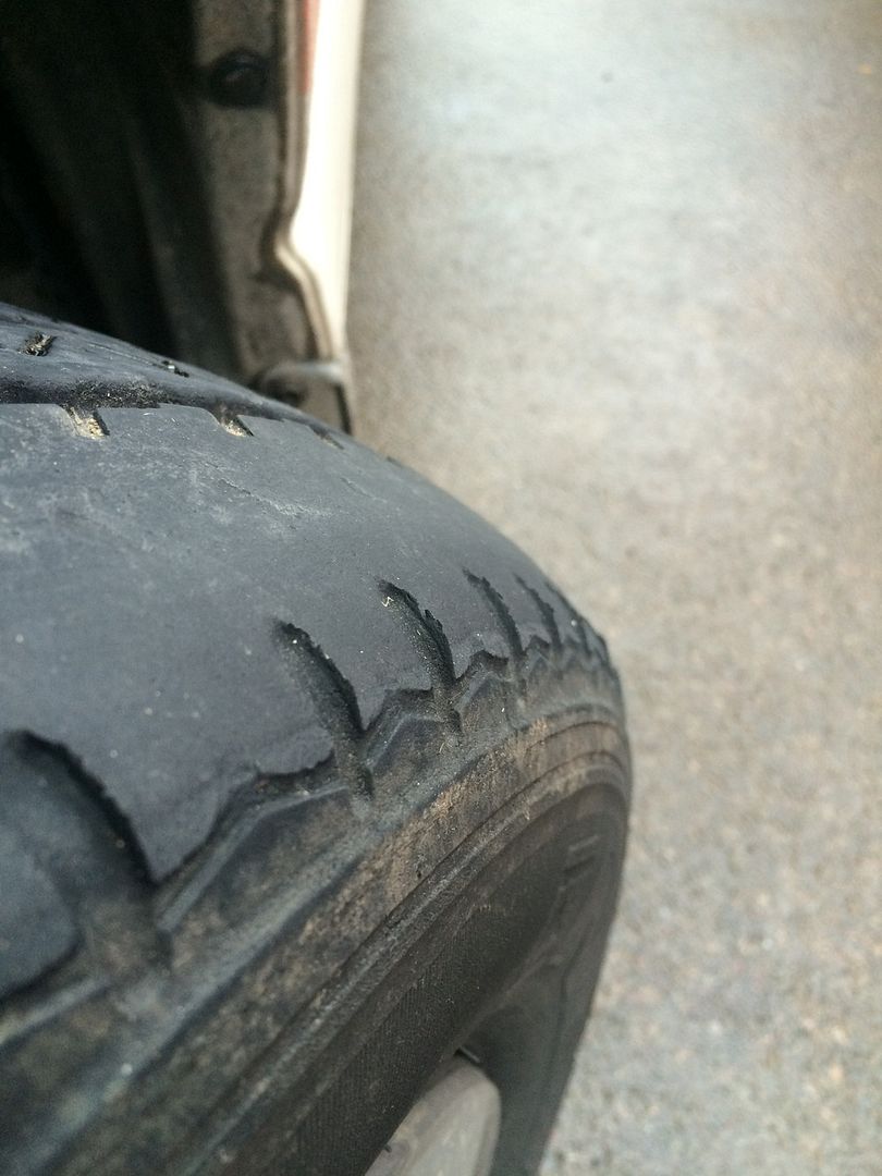 But the nearside is wearing on the outside only and leaving little bits of rubber sticking up.