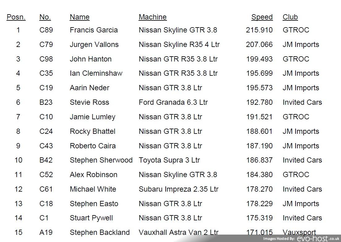 [quote=stevieturbo]rear view 1km, only got 1 run as clutch started slipping after that, amazed it's lasted this long ! Will need to wait another year for the 200mph attempt to beat more of those damned GTR's, they just go too fast.