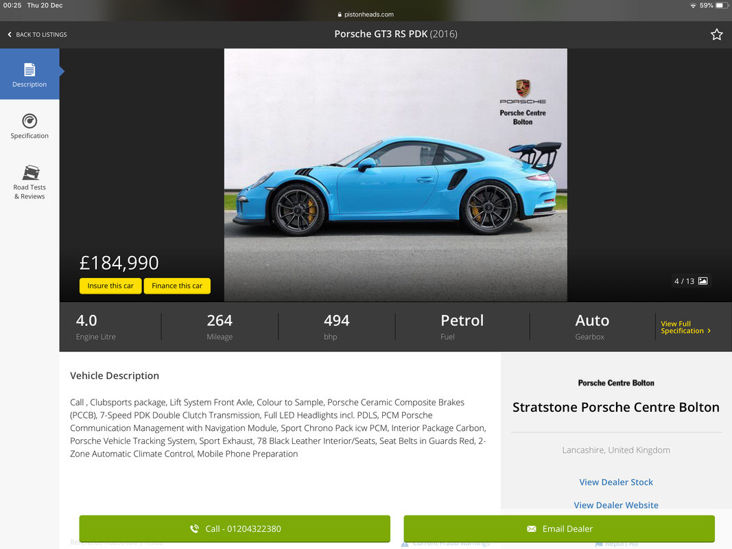 The thing with all these models are the new ones are and will be far better. in the 997 days they were last of an era, the 3 cars above are VERY over valued atm and seem to have very few buyers as for a few £ more you can buy a new one 991.2 RS selling prices are really sub £200k now as 911 sport proved selling theirs while every one else's are still for sale.