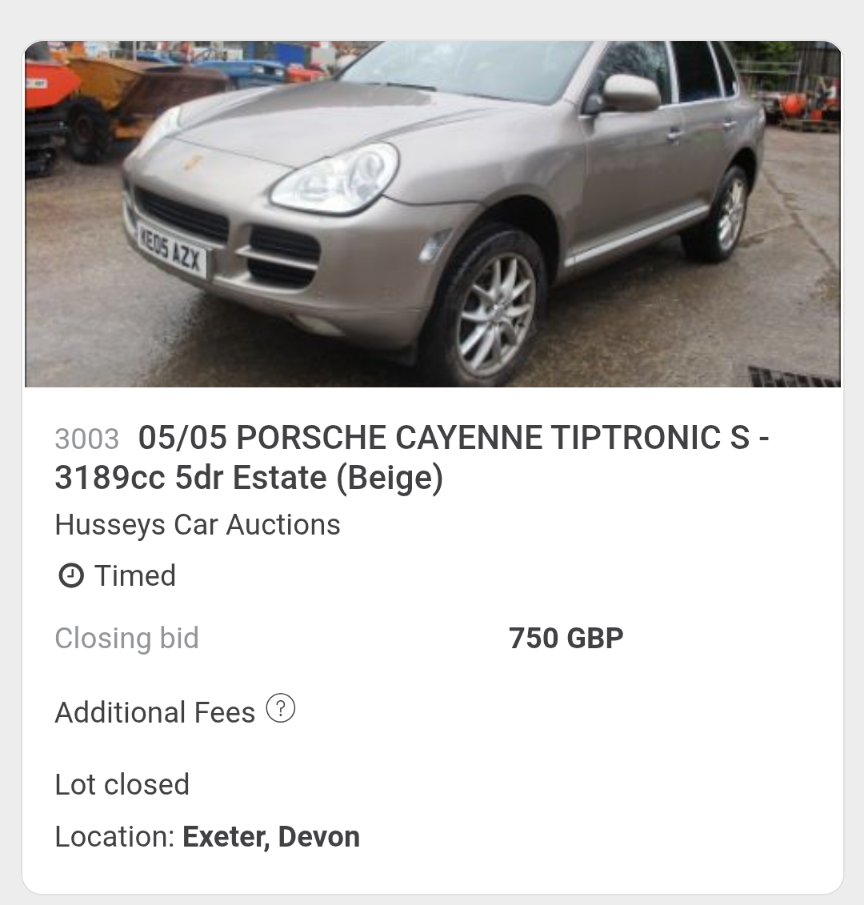 Must have been lucky to pick up a 4.5 Cayenne S with 73,000 on the clock for less than £6k in July then.