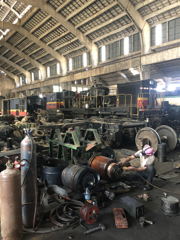 It does indeed - a web search shows that's the logo of the Royal Railway of Cambodia. Which makes the locomotive an Indian YDM-4, built by Banaras Locomotive Works to Alco's DL535 design in the 1960s. A batch of YDM-4s were leased by IR to Malaysia, and they were then re-leased to Cambodia in 2019 to help restart railway operations there. Gassing Station | Boats, Planes & Trains | Top of Page | What's New | My Stuff