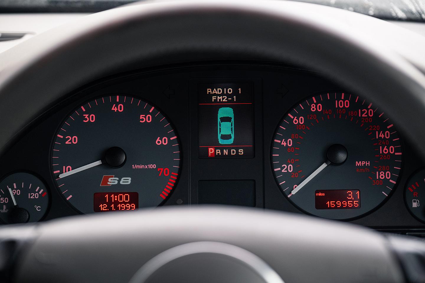 Yet speed still comes easily, and the first S8 is almost as good at creating double-take speedo numbers as any of its successors. Only wind whisper from tired seals disturbs the tranquility of the cabin - the side windows have double glazing - and generous sound deadening keeps road roar to a minimum. Grip levels are still respectable, this one now rides on non-period Kumho Ecstas, but these found good adhesion on cold, wet roads - although with a handling balance that is always front biased. Watch the S8's famous cameo in Ronin and you'll see that even with the considerable skills of Jean-Claude Lagniez's stunt team the only on-camera oversteer is clearly delivered by a rear axle line-lock.