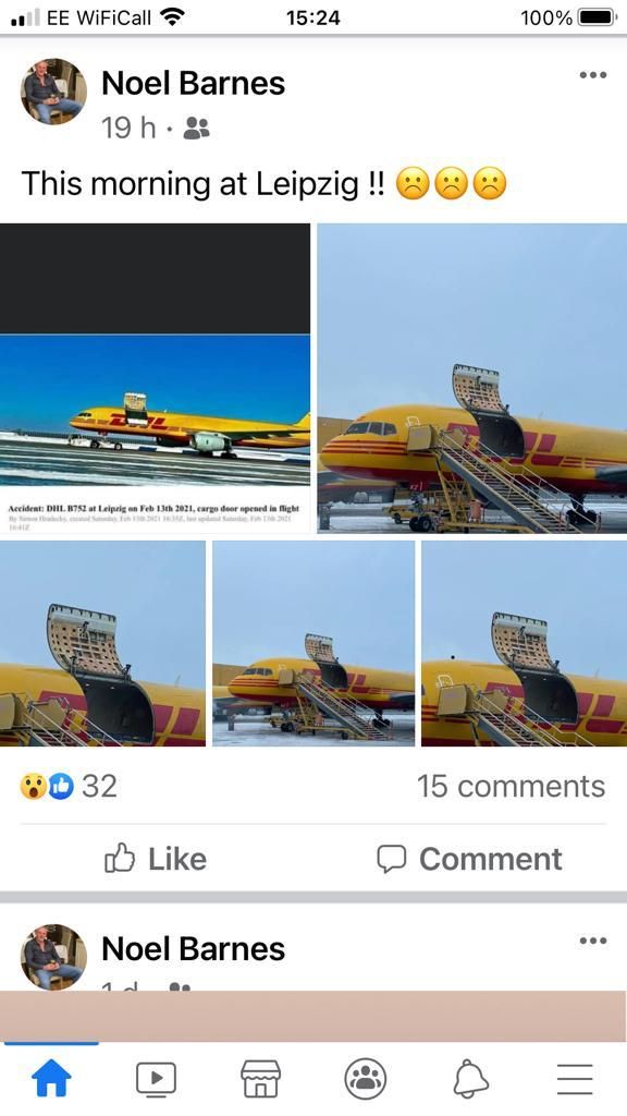 DHL 757-200 cargo door opened in flight.