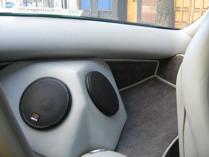 I used larger (6.5" ) speakers in the back, made my enclosure from fibreglass and then had leather stretched to meet the form. I put 4" mid-range speakers in place of the standard pioneers (needed a little trimming), and tweeters up front on the parcel shelf. I think my speaker package is a Focal 165W3.