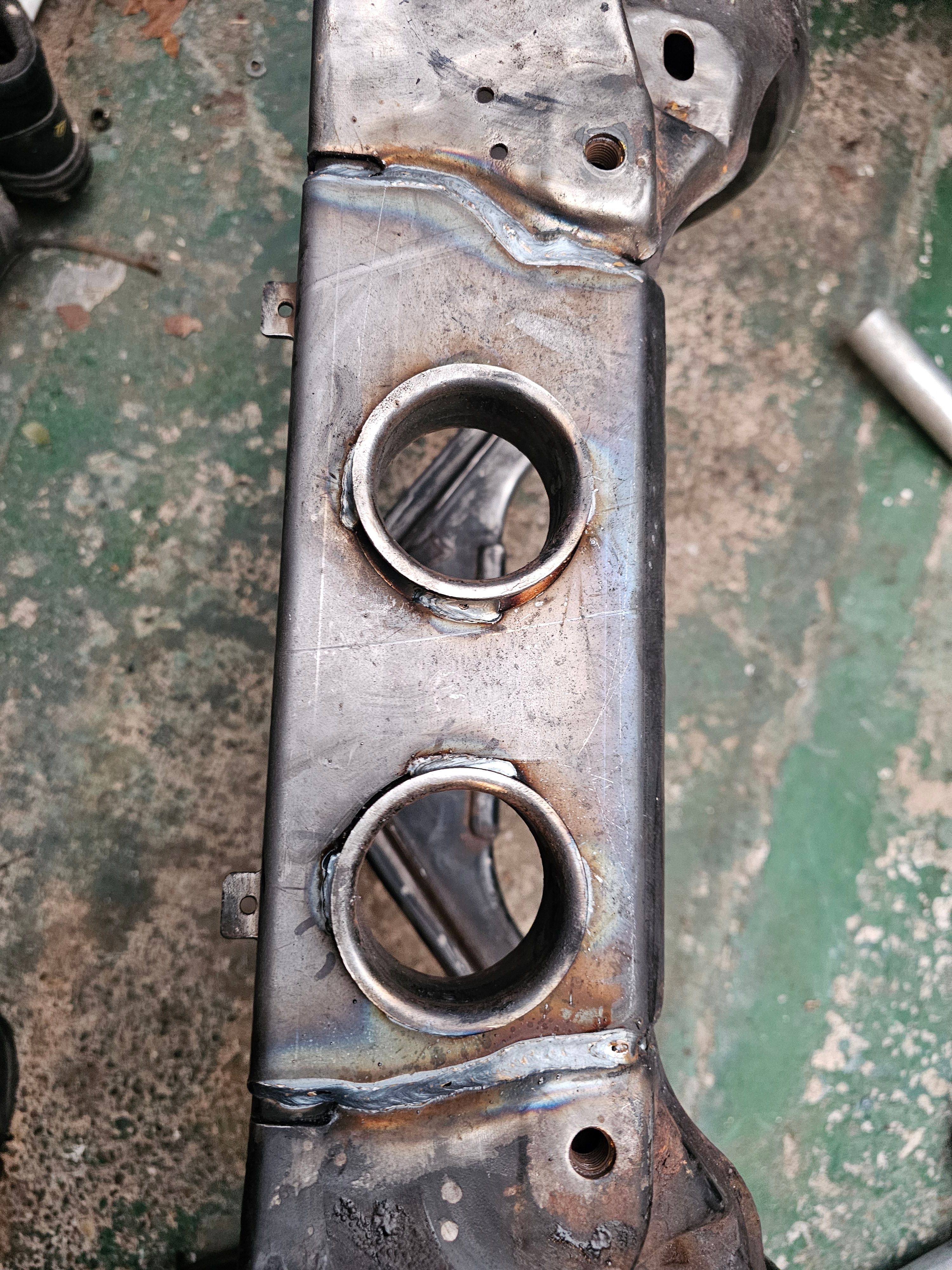 The rust did look scary but I think I managed to save a lot of "paid for" time by striping it down so far, it's looking to be around £1000 all in for the welding so I'm very happy with that!Fairly steady progress of test fitting the new manifolds and turbo to the long block. At least this is the main bits (financially) out of the way. I'll have to have a think before I ask the table to support the starter motor, alternator and power steering pump as well!