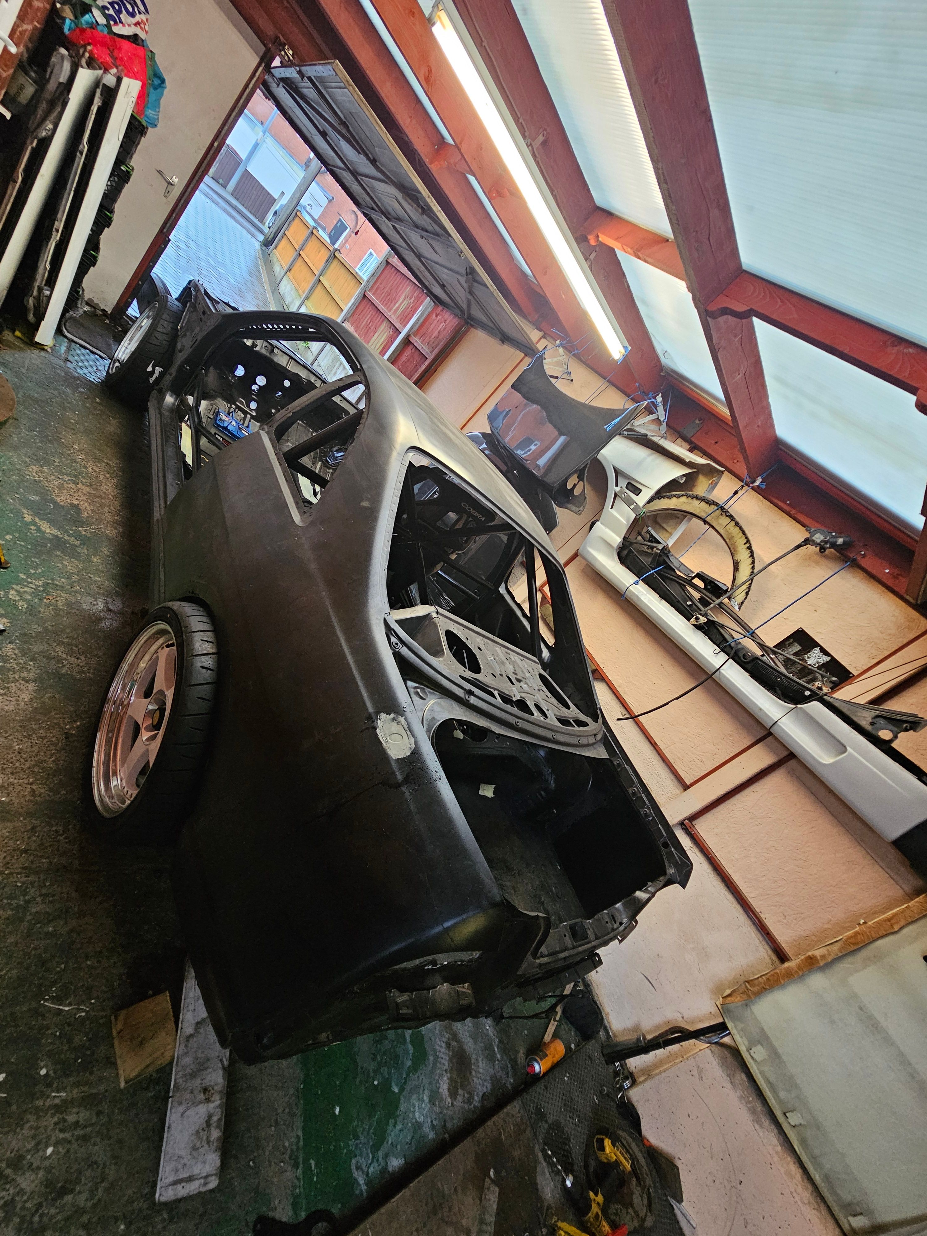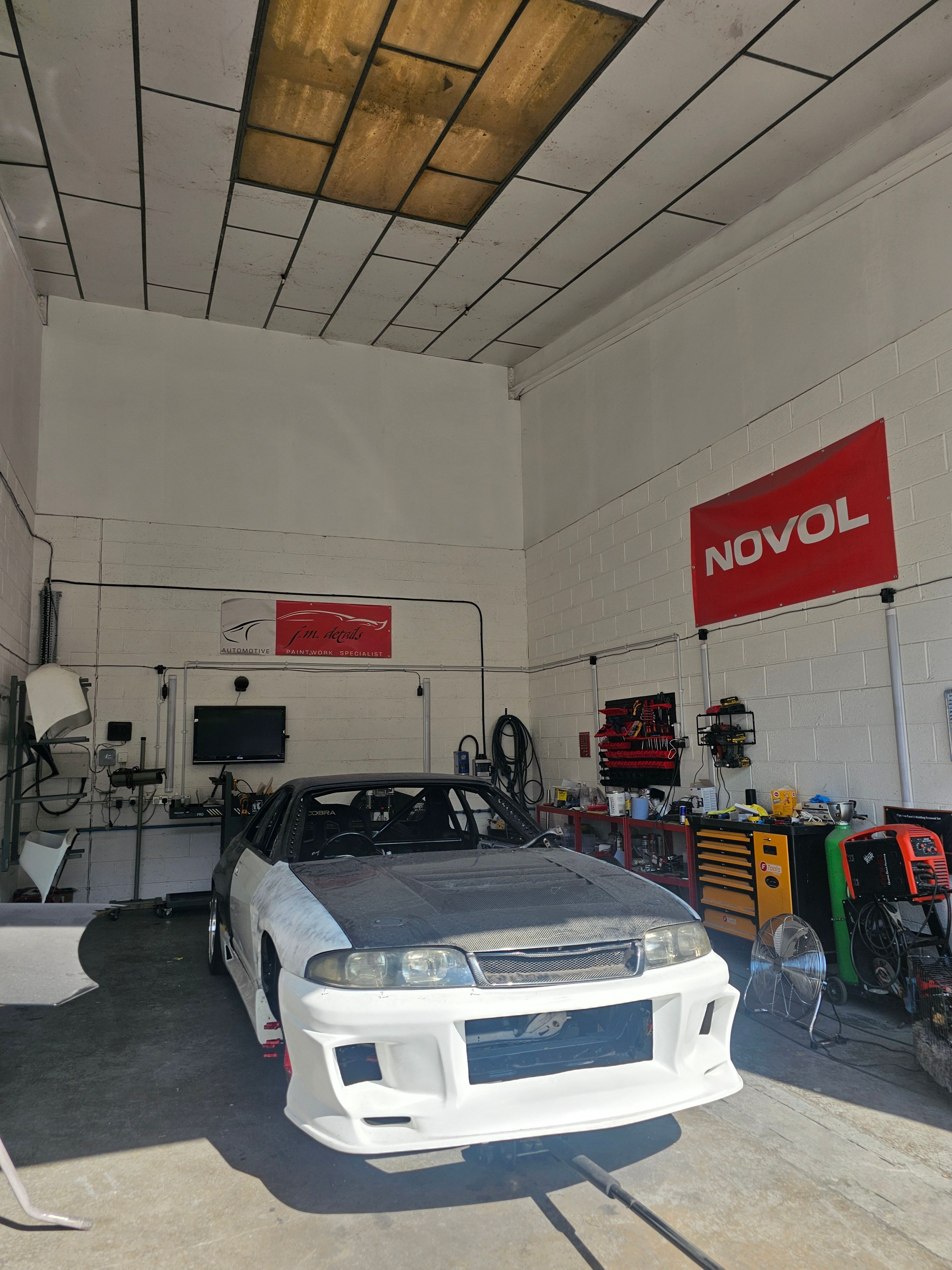 Looking like a real car again it was time to get the car to a professional! JM Details were identified as a bodyshop who would like a large JDM fibreglass project, and inspired by the reviews I could find, it was booked in and transported.