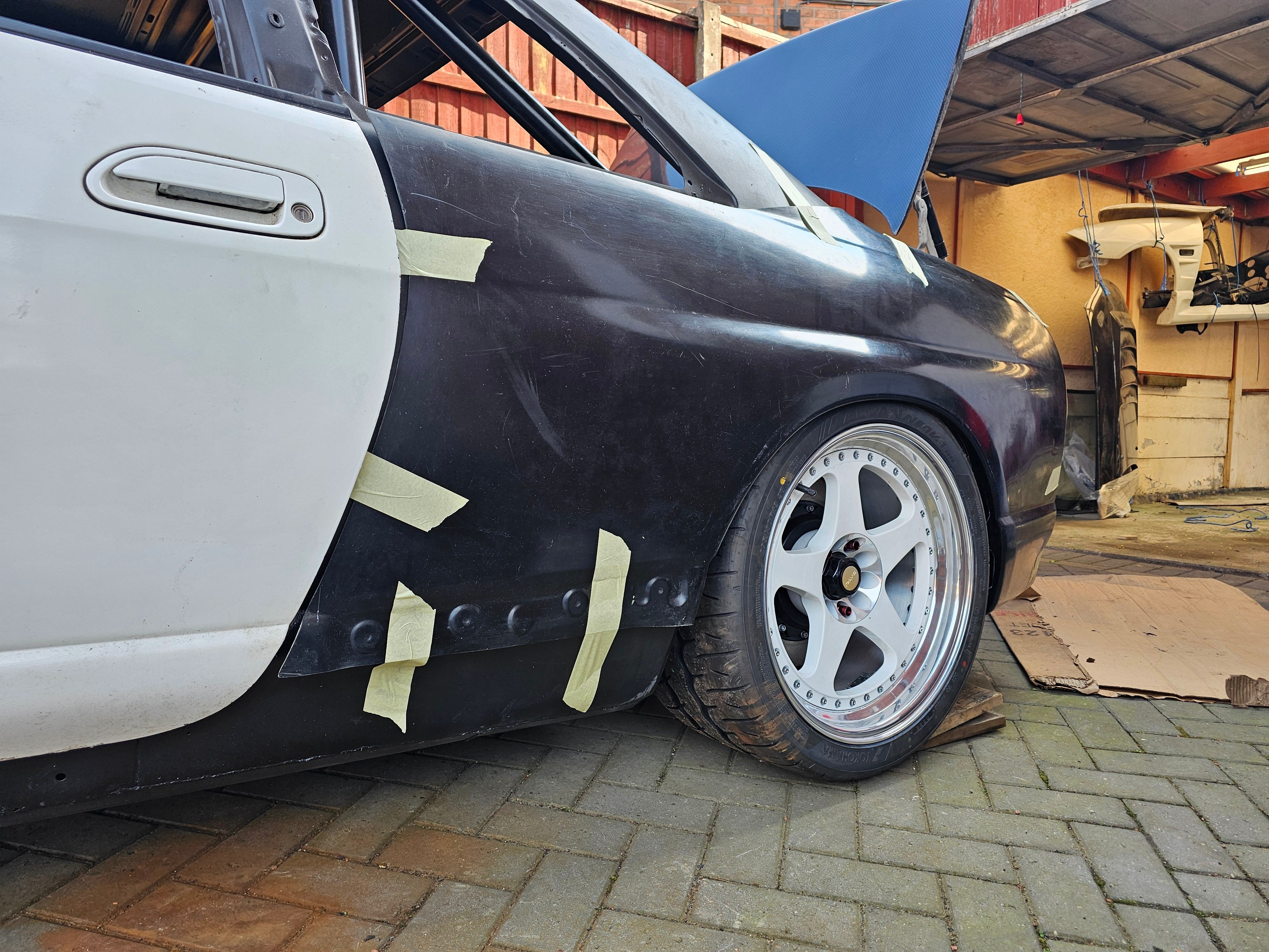 Jason will be bonding on the rear wings after modifications to the rear arches to allow clearance. Also there are lots of parts of the car that need attention to get the best results from the imminent paint job. This work is ongoing so the next update on the respray may be a couple of months away.