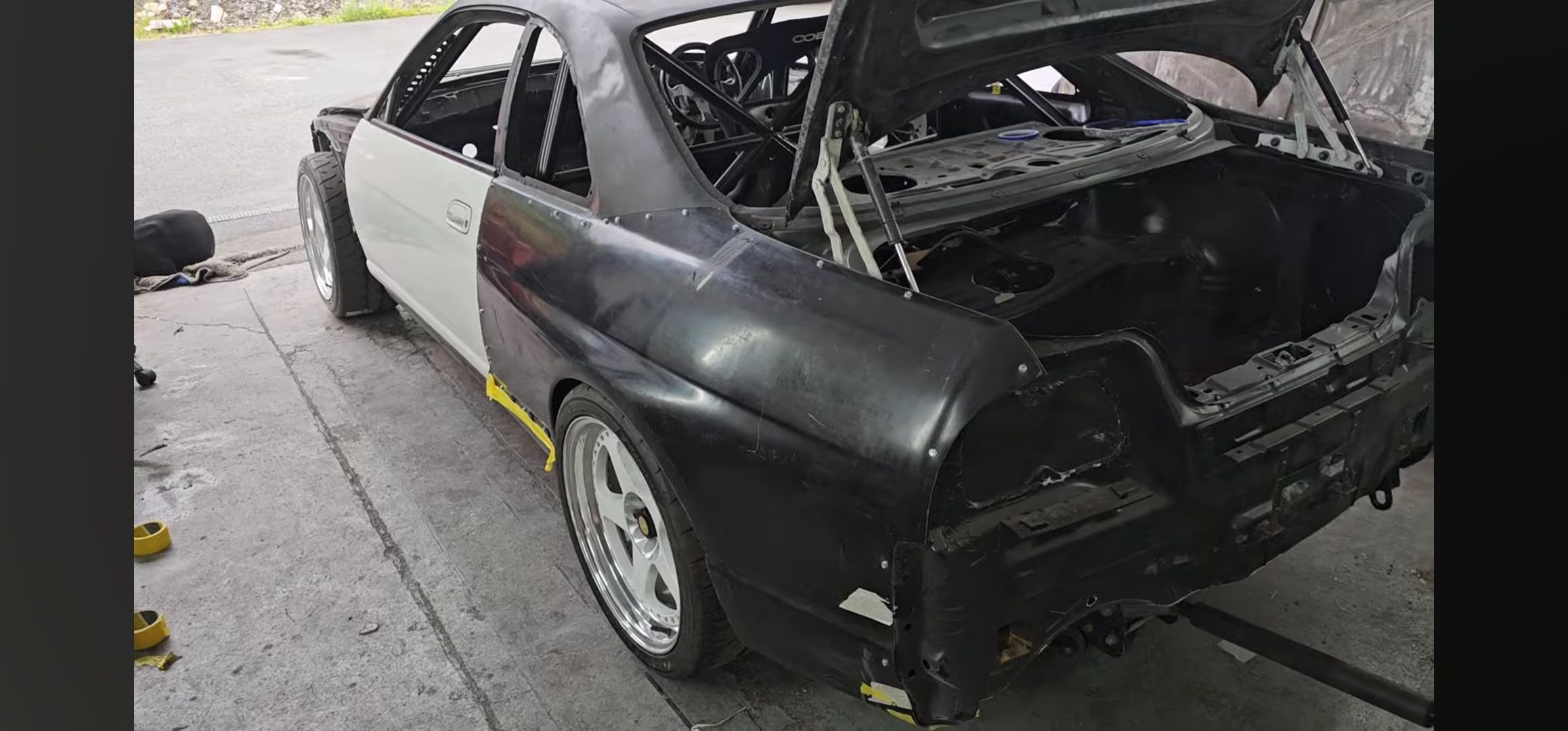 This is how the car had come back from the roll cage installation and epoxy primer.