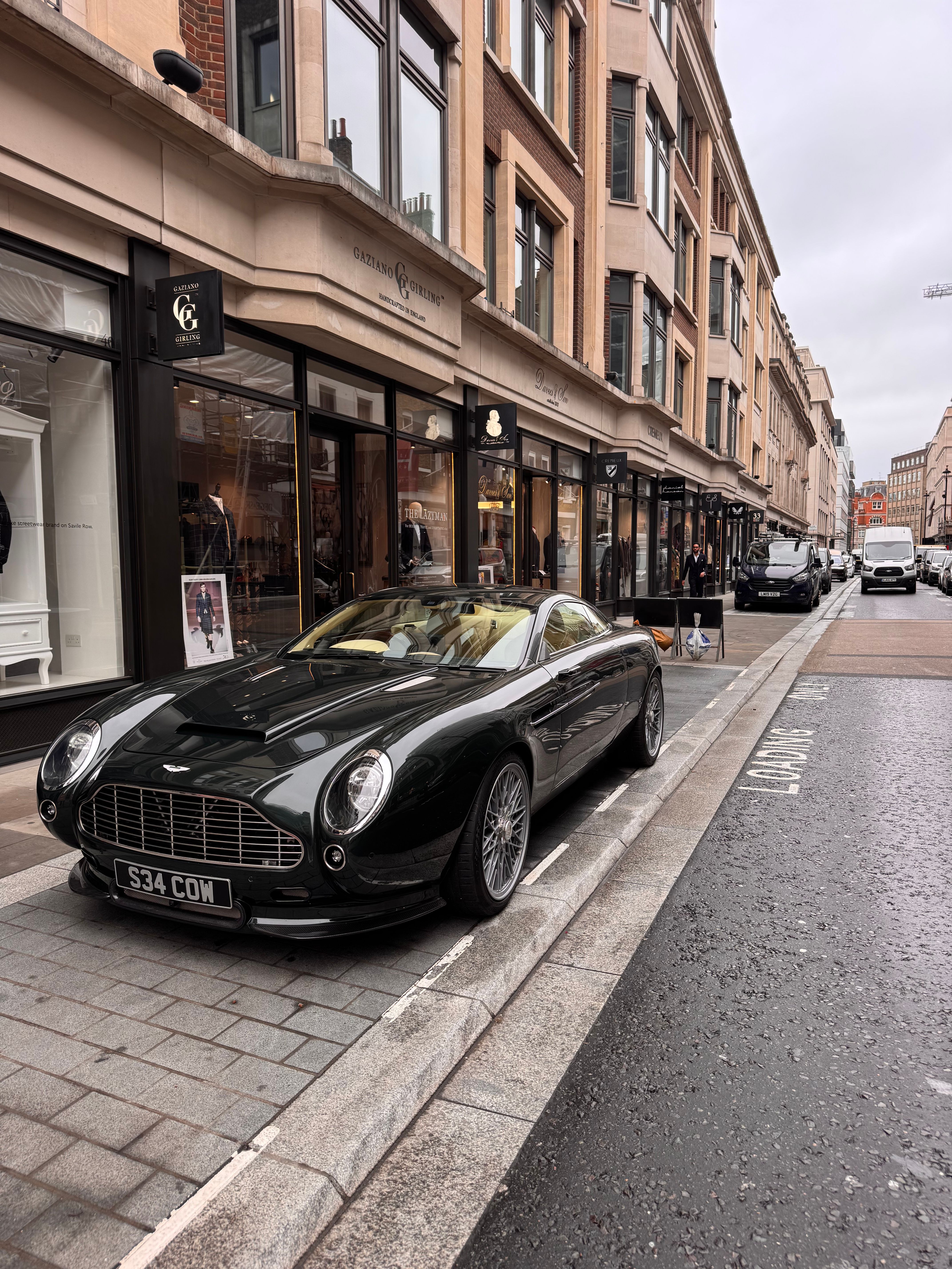 I just spotted what looked Ike a sort of backdated Aston Martin, reg was S34COW. Phone was flat so no pic I’m afraid.