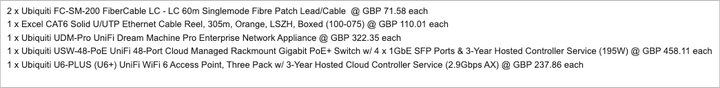 This is pretty much the kit-list I put together a few weeks back, other than the Cloud Gateway Ultra. That does look a little bit 'lite' compared to the Dream Machine Pro.