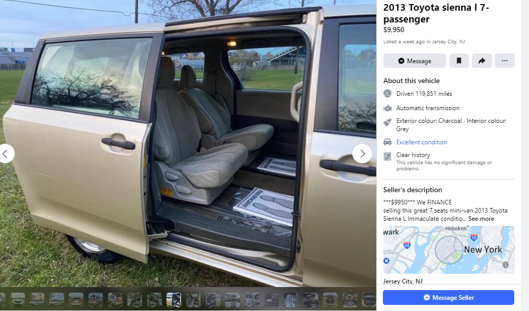 Other priorities ATM but still opening FB marketplace to see what pops up. Still teasing me with randoms, despite my last ten searches all saying SIenna/Metris/T6/Odyssey. A quick check of the two sensible suggestion show seven seats, which wont work. The sofaesque Ford van made me laugh so sharing, advert in Spanish. Seven million illegals crossed since Biden opened the border, Ive waited 18 months for my visa, married to an American, lol, my original job offer has long gone and that employer has hit the hard times on recruitment, and things are pretty tight everywhere. As an exmaple, currently Tesla has 5 jobs across the whole of USA, last month, there were hundreds. Gulp!