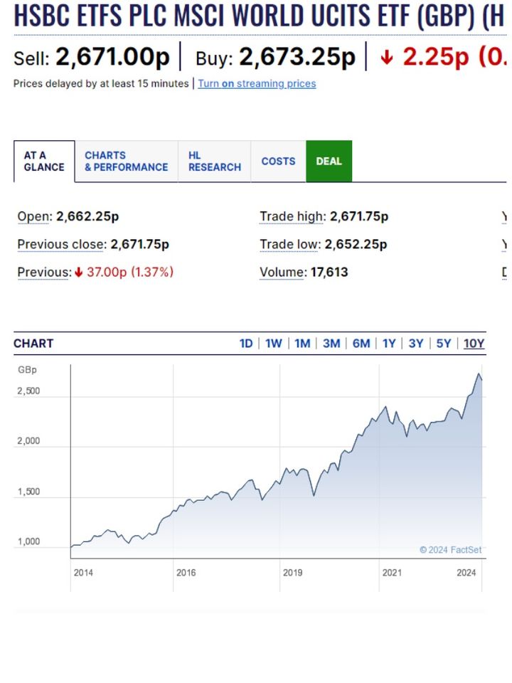 the following shows the growth of a world tracker over 10 years (this particular one also pays 1.75% dividend too). largely the growth is created by tech stock