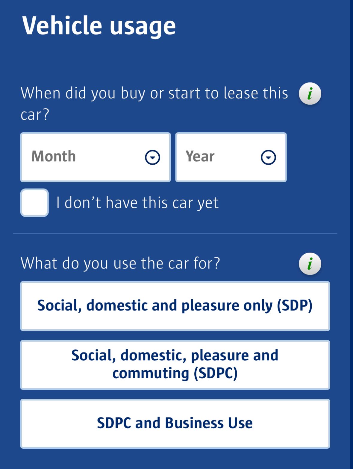 Vehicle usage relates to whether you’re covered for commuting or not (the clue is surely in the name!).