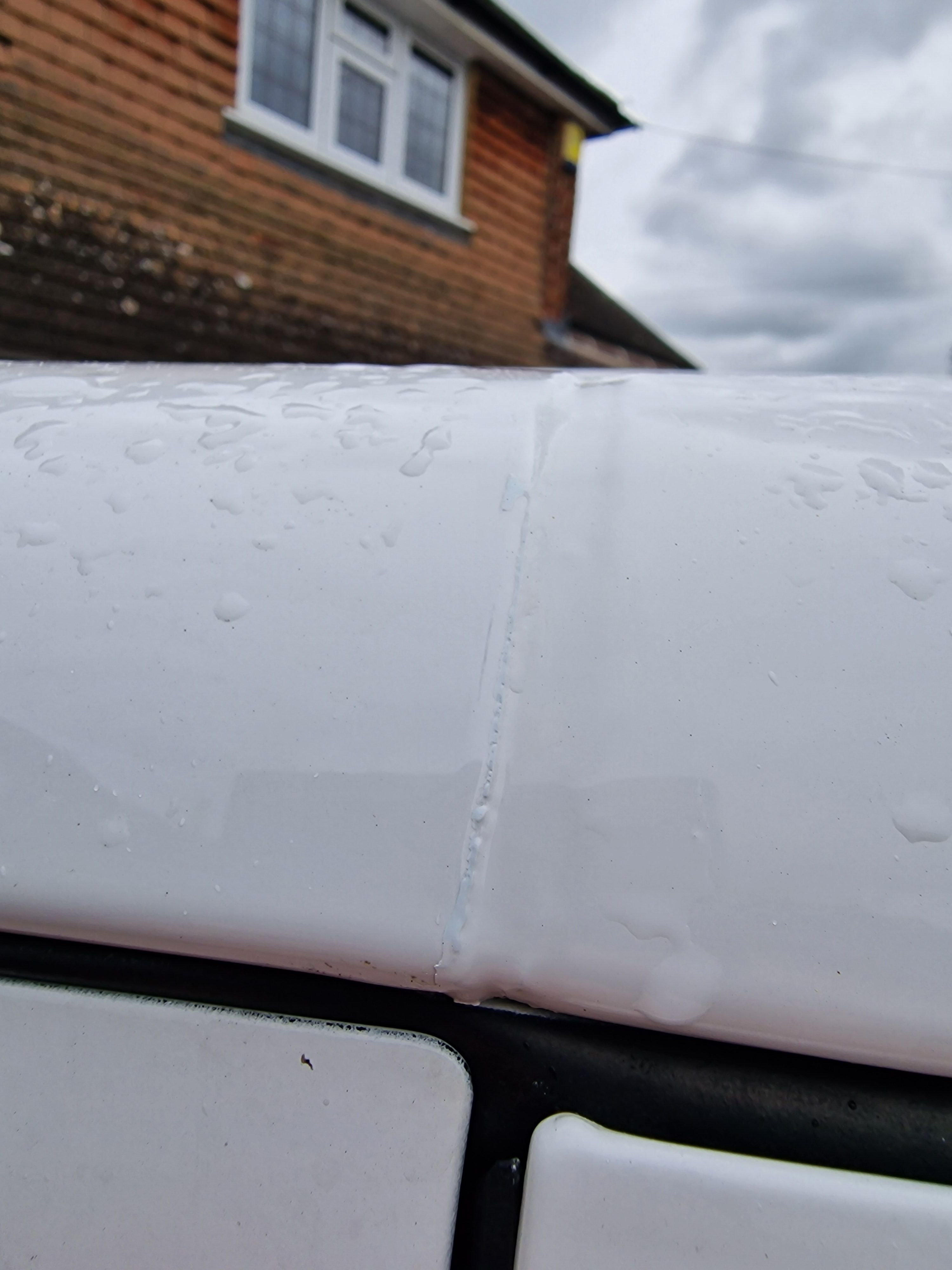 Above the passenger door there appears to be a weld mark that has been painted, unsure if this is a seam and thats where something has been resprayed at some point, in fact thinking about it the flaking paint on the roof suggests something was dropped on it and a new a pillar was welded in?