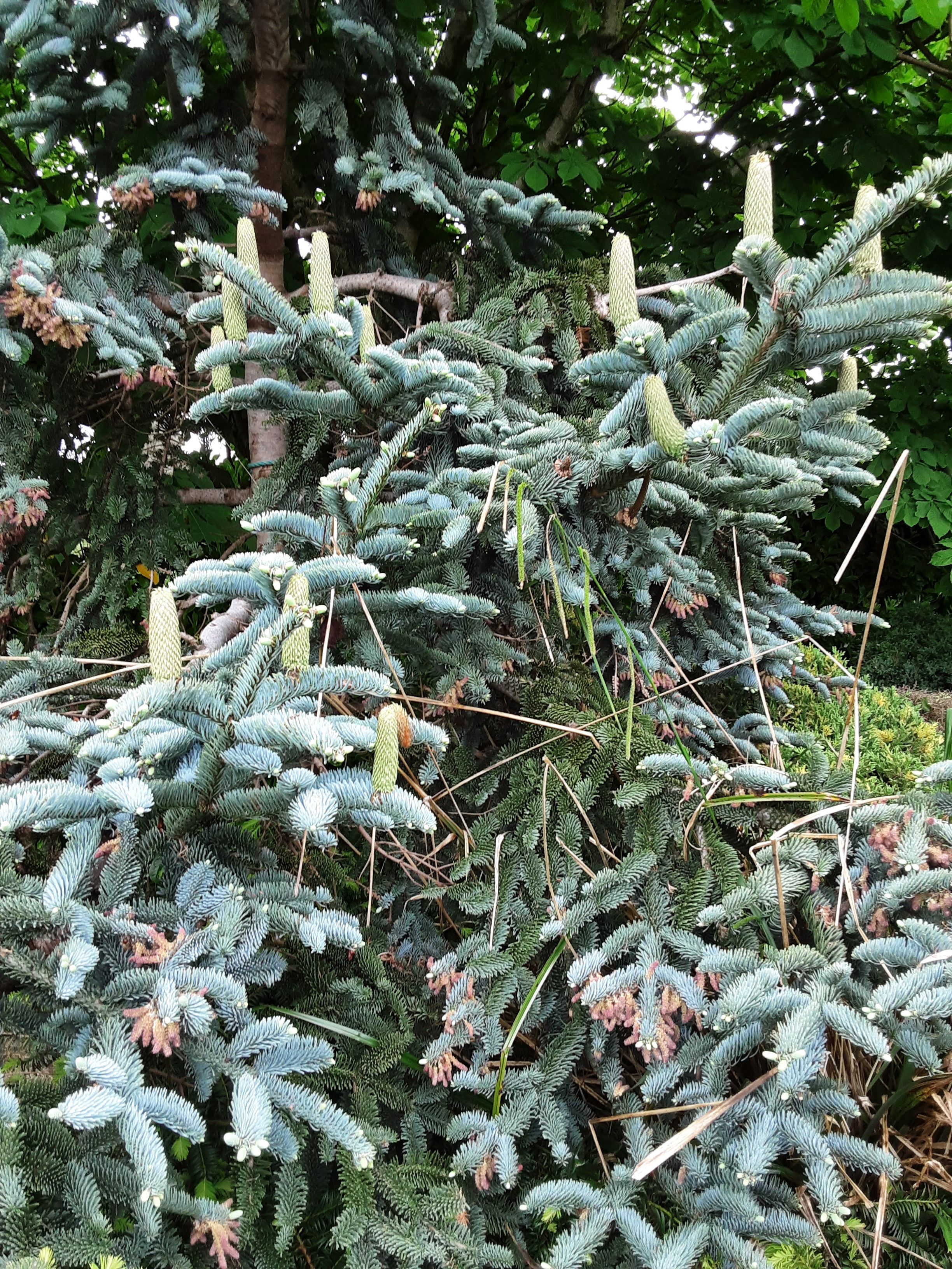 The Blue Spruce cones forming (every two years)