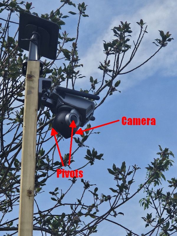 The property behind mine has turned into a building site and they are storing expensive diggers / equipment in the garden. The builders have erected a wooden post with an outdoor security camera (to keep an eye on their equipment no doubt).