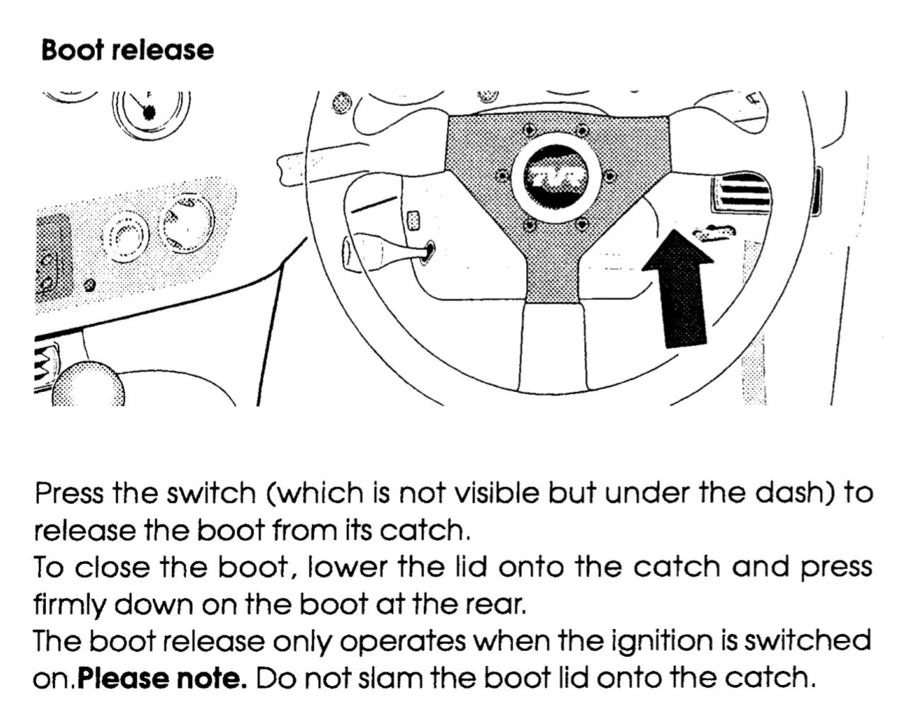 Just FYI the ignition needs to be on to use the button under the dash to release the boot, unless someone has rewired it.