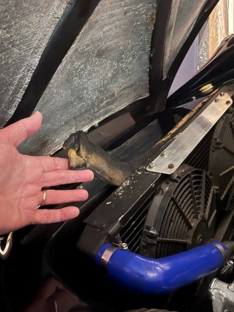 I am getting around to cleaning up the engine bay, and ran across this unsightly piece of what looks to be old/stiff/dried out foam rubber lodged between the top of the radiator and the car structure.