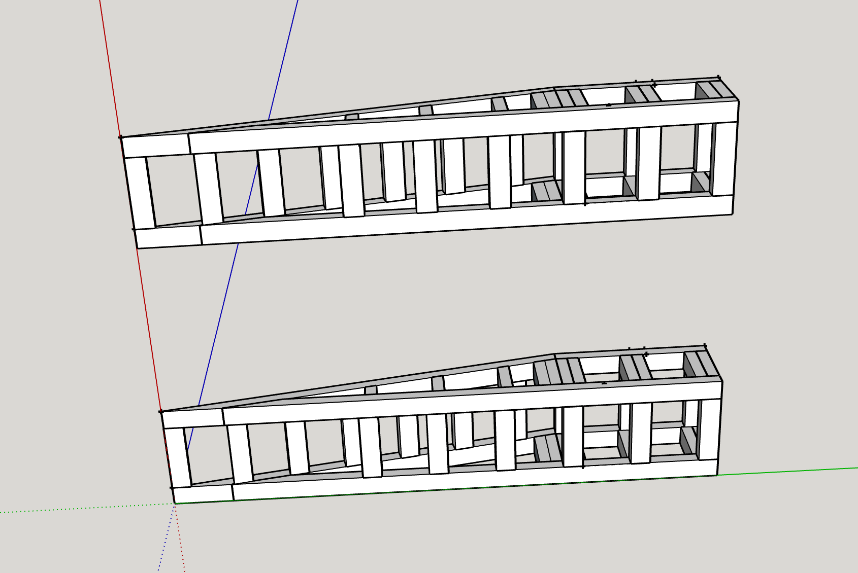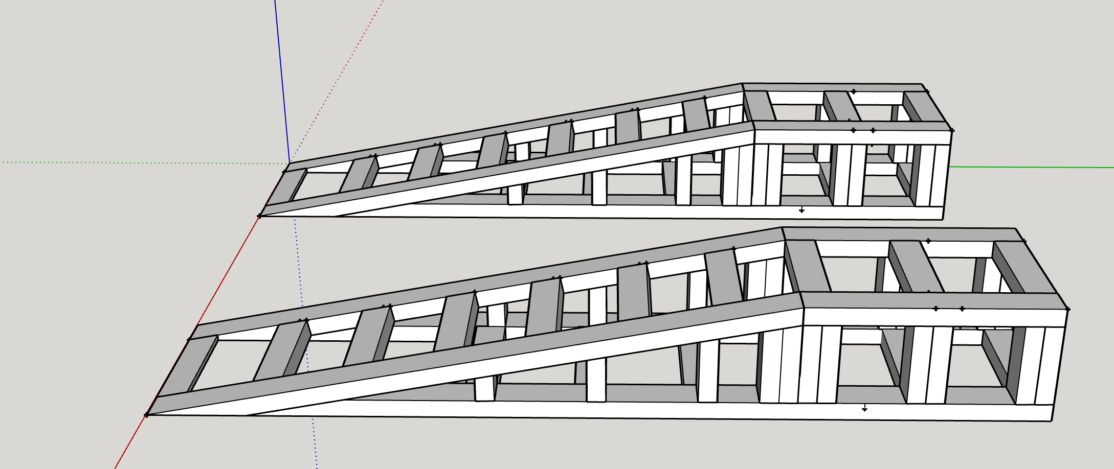 I decided to use the R&D done by the folks to make a design in Sketchup that I'm happy to open source - mostly to get some feedback from those familiar with working with timber to analyse the crush strength and work out if a £60 B&Q jobby is up to the task.
