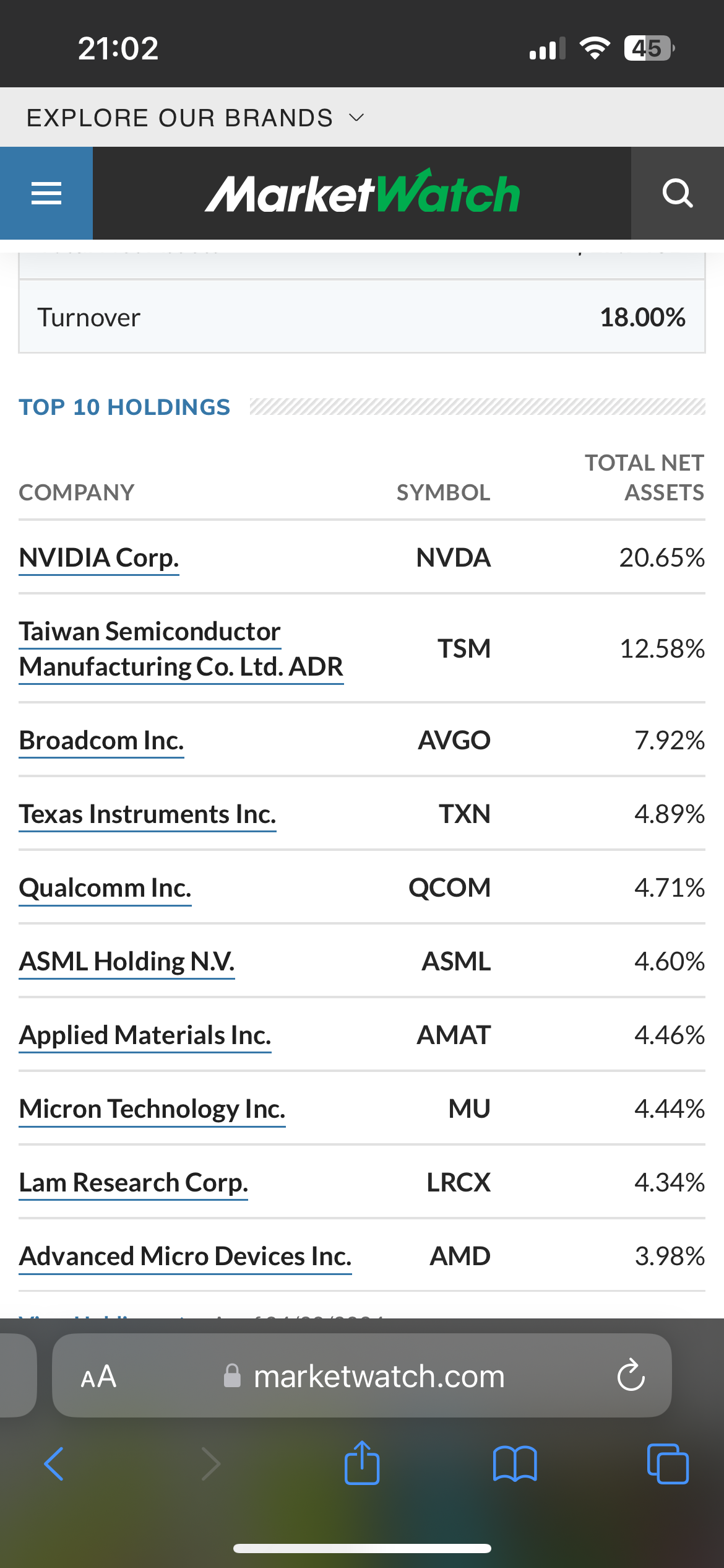 Listed ETF format. Nvidia being the largest constituent. Top 10 holdings below.