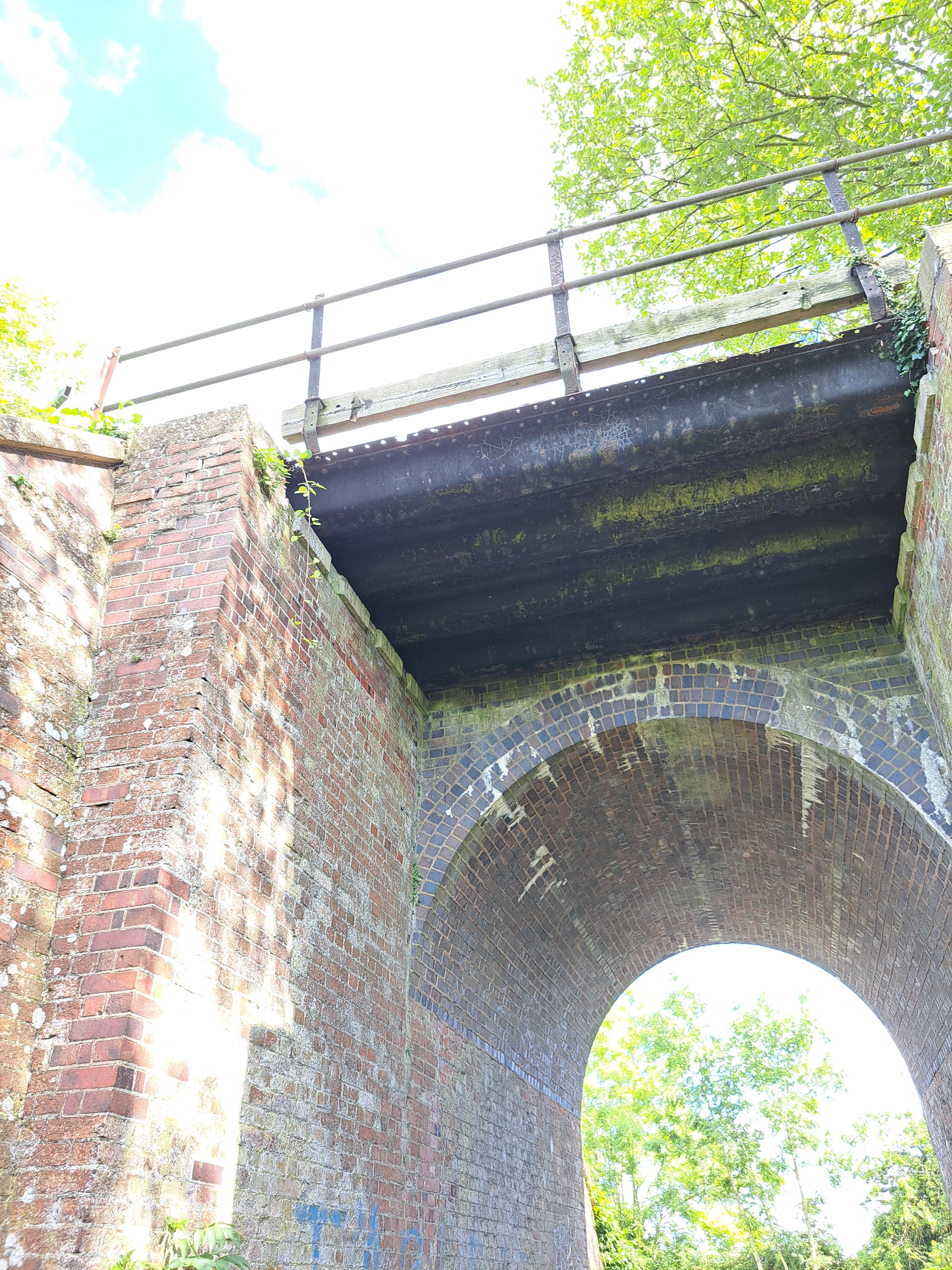 The mismatch between the red brick abutments and the blue engineering brick arch is, I believe, because once the DN&SR became part of the GWR in the 1920s the Western carried out some upgrade work to run heavier trains, finding that the cash-strapped DN&SR had been rather stingy with the specification of some of the occupation bridges.