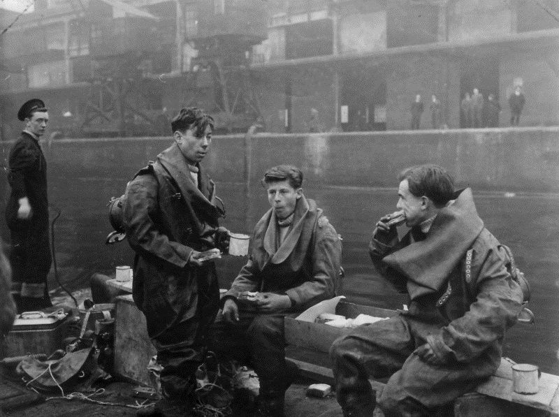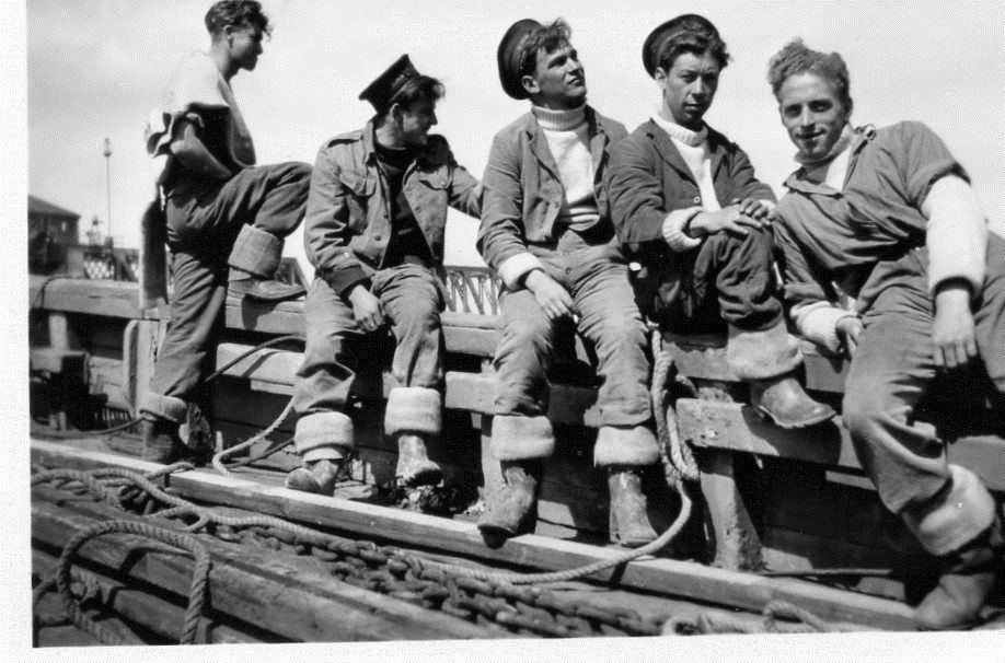 My Dad, second from left, just come up from a dive to have a well earned cuppa