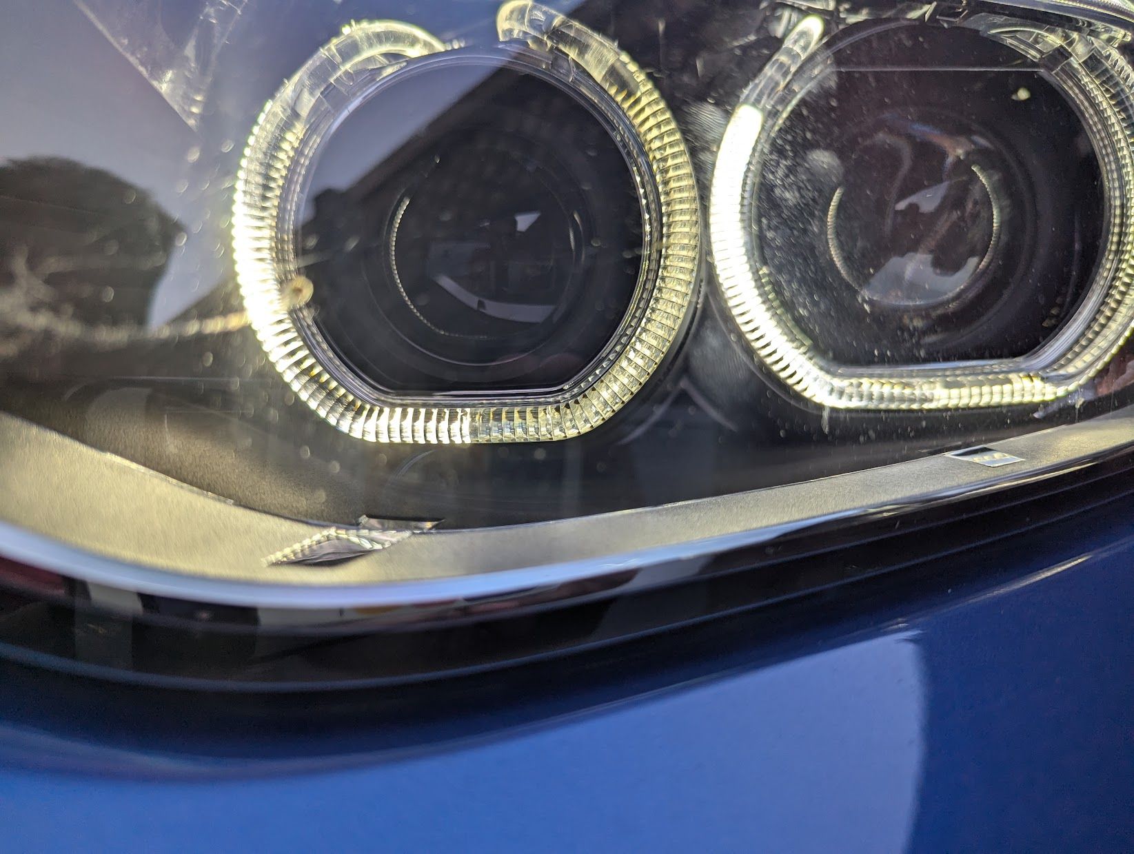So I was walking back to my car and it looked like only half of the DRL was on when I unlocked the car. It seems to just be on the passenger side for the inner DRL. It looks like maybe half of the light has failed?