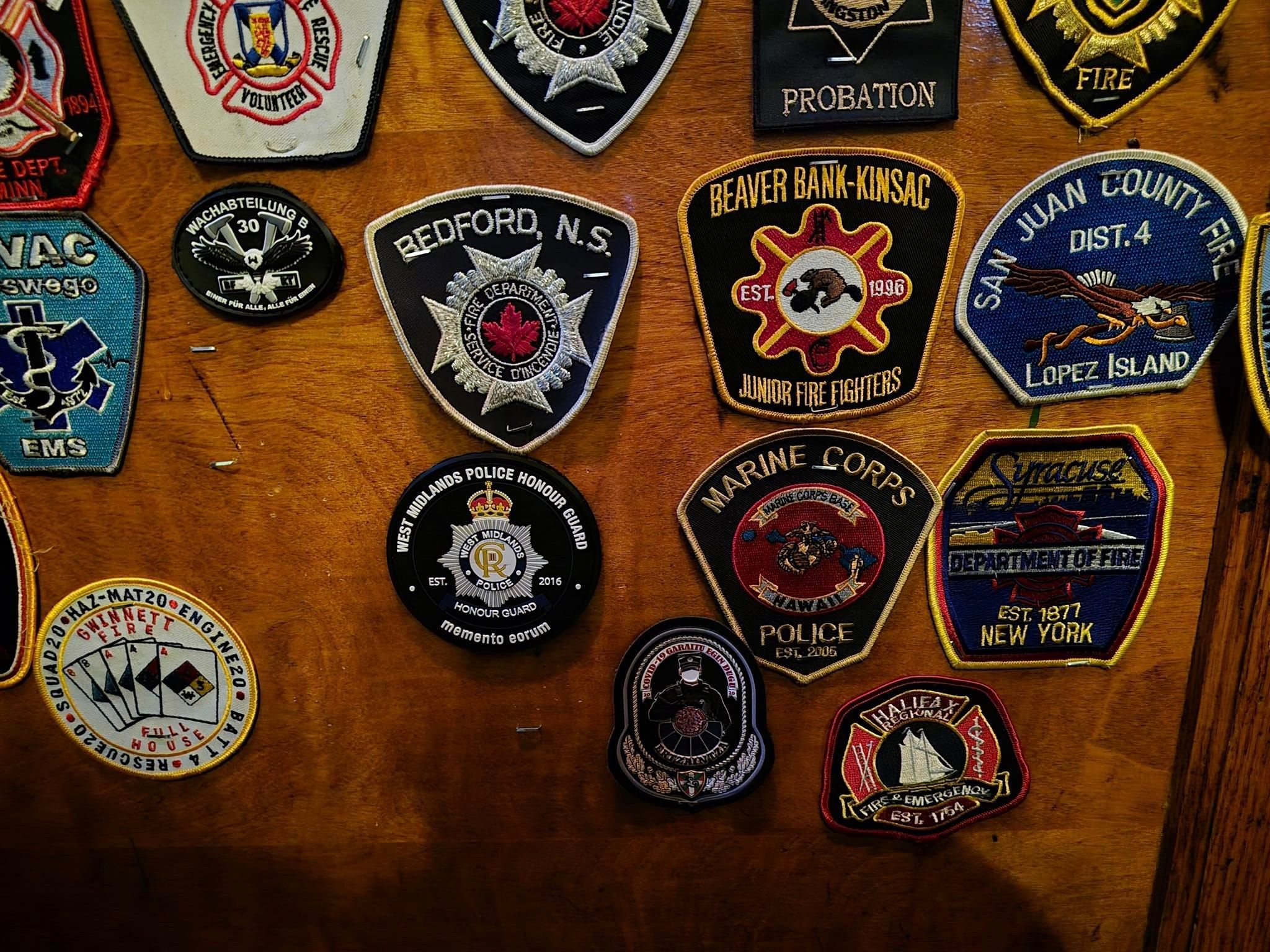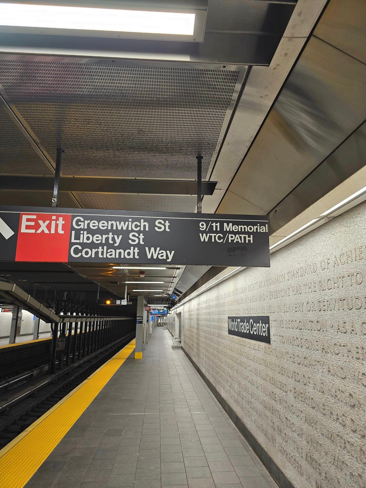 Well, it turned out we had 12 hours between flights. We landed at 2130, at T8, went across to T4 to drop bags off after finding that the bag storage no longer existed at T4 - or so the lackadaisical, distinctly unhelpful staff said - dropped them at stupid expense then headed to Jamaica station on the Airtrain where we caught the Long Island Rail Road into Penn Station. A quick subway ride down to Cortlandt Street and a walk around Ground Zero, sadly cordoned off at night. I had wanted to go up the Empire State Building which is open until 0100 but it's $84 to go to the top!! We went around the corner from WTC to a cop/fire service bar (O'Hara's) where my friend added his WMP Honour Guard patch to the wall of patches. Oddly, the table we chose to sit at had a West Mids epaulette stapled to the wall with a collar number on he recognised...a quick whatsapp message confirmed that a female on his team had sat at the same table a year or so ago!