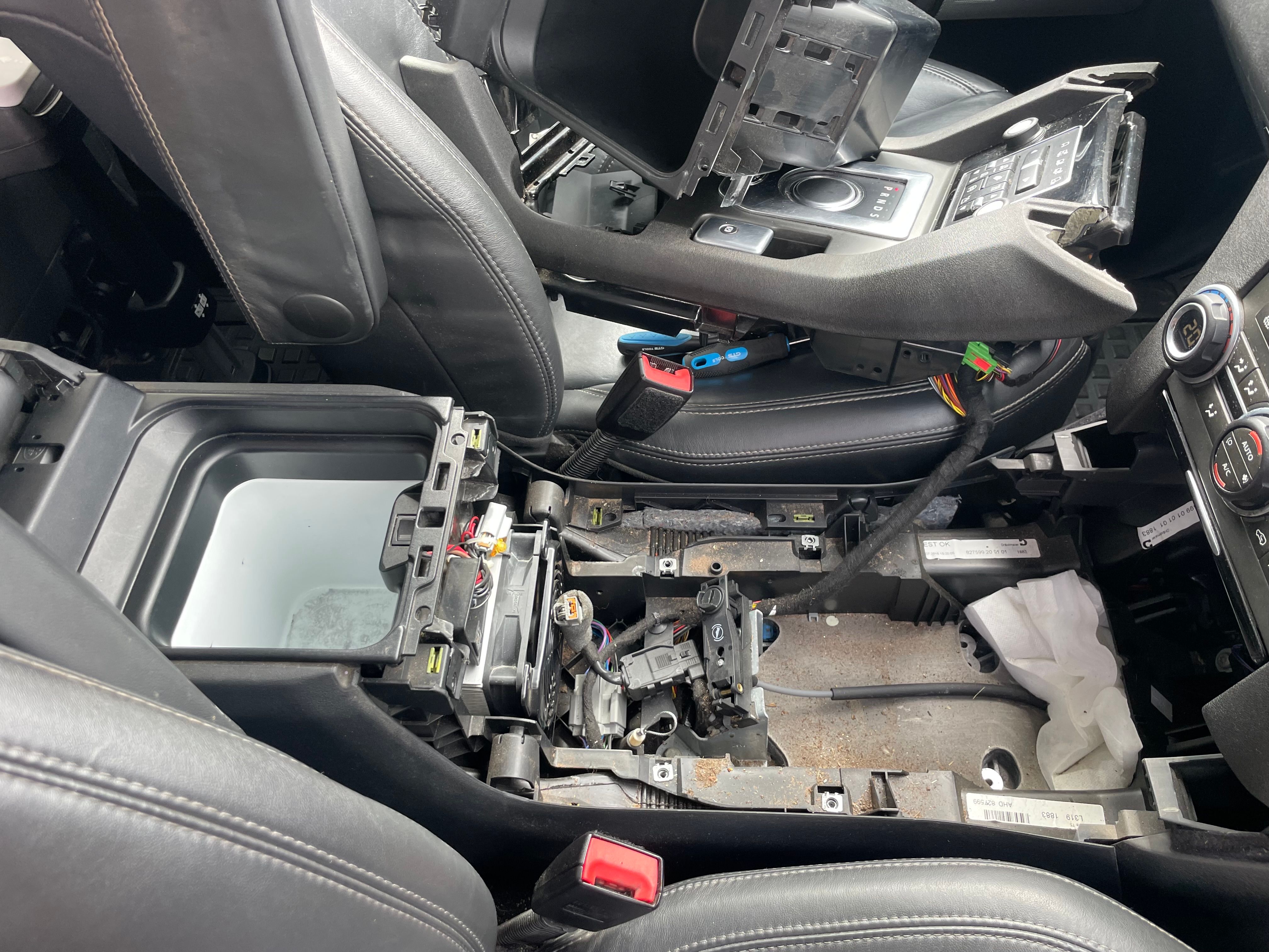 Took the centre console apart to fit the cubby box fridge.