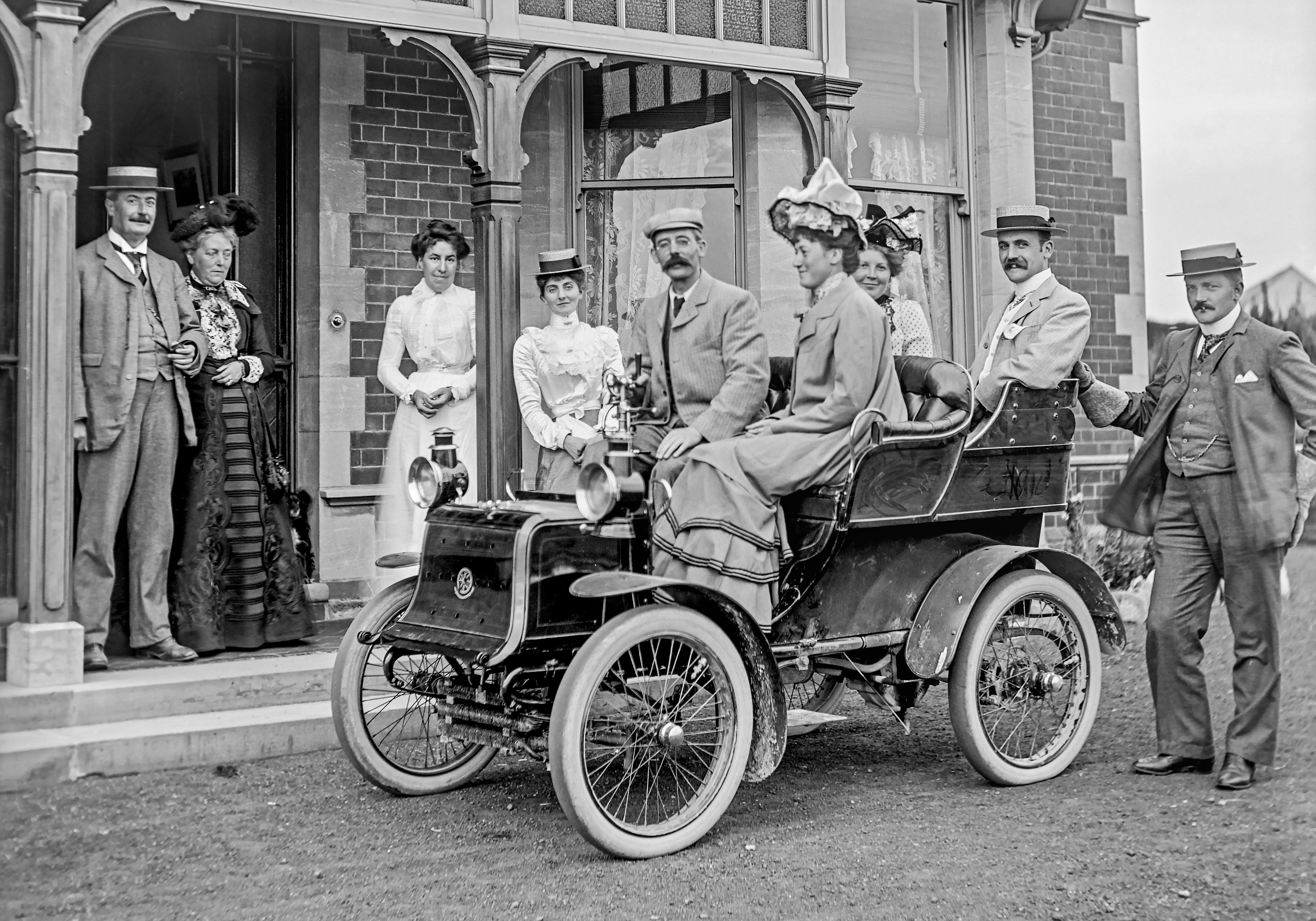 It looks to be a De Dion-Bouton Vis-à-vis made between 1898 and 1902. They didn't all use the vis-à-vis seating layout, though the great majority did.