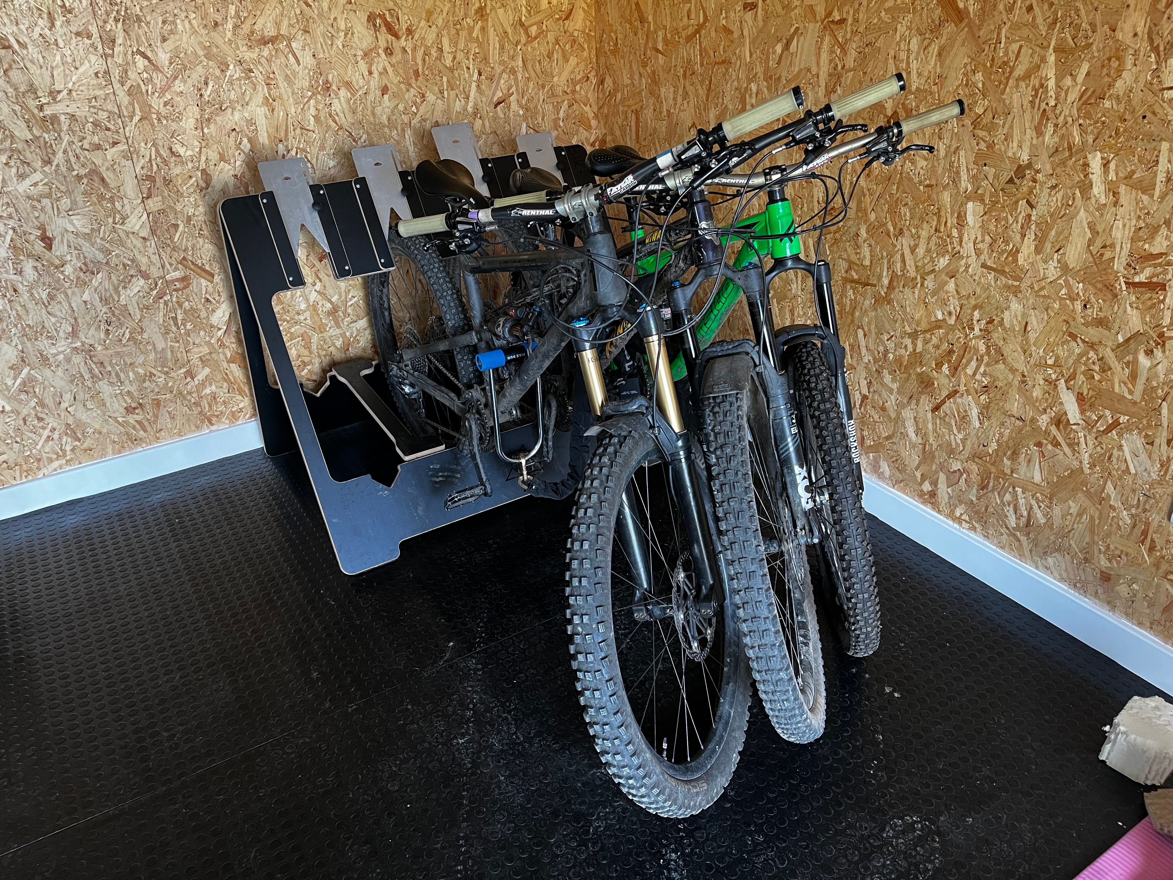 Just picked up a Teal Triangle 5-bike vertical bike rack via eBay for £125. Available new on Amazon for about £275. Very nice piece of kit and adjustable height so you can accommodate longer 29" mountain bikes.