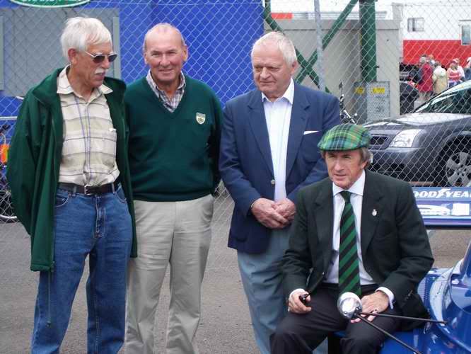 Jackie Stewart with 3 of his F1 mechanics from the Tyrrell championship years - Roger Hill, Neil Davis and Roly Law. (Taken at the Silverstone Classic 2005)
